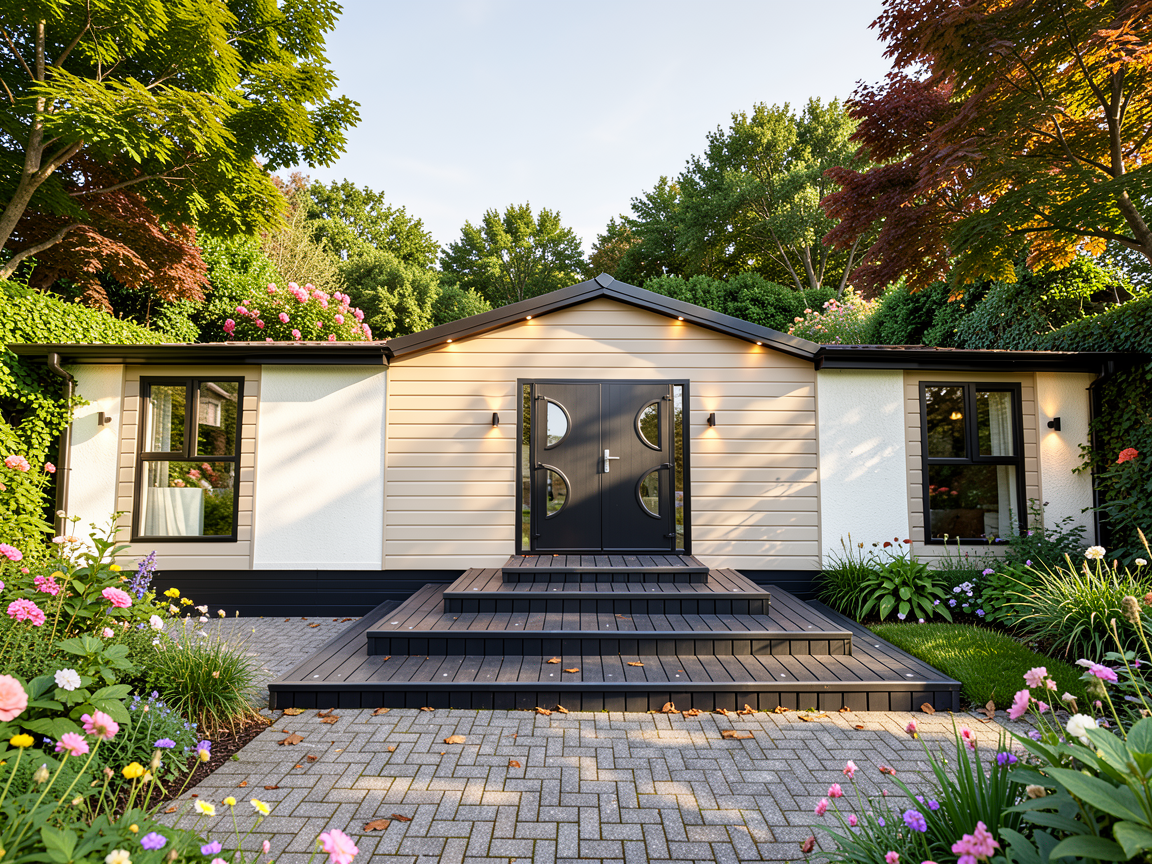 the sun is facing the house facade warm and weak sunset light the rest stays the same