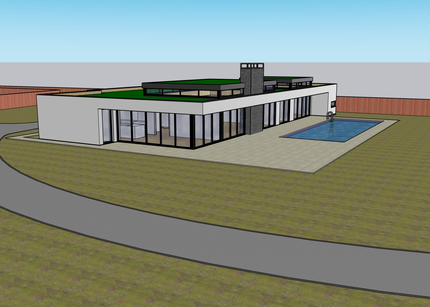 can you add some trees behind the fences and add some landscaping