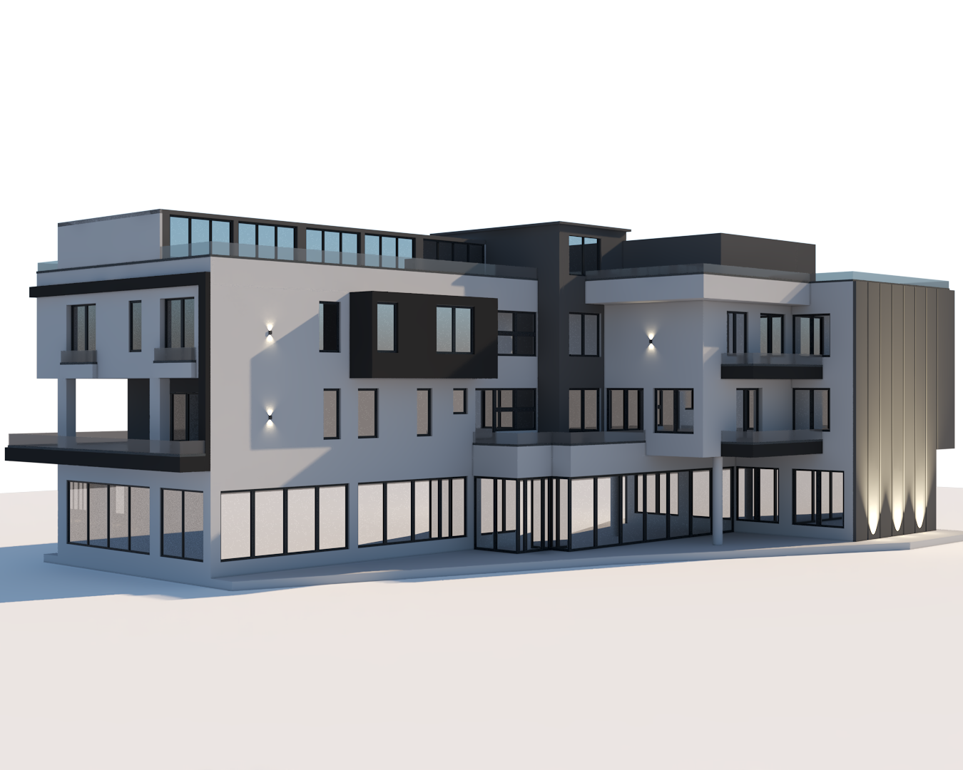 architectural exterior renovation visualization of an existing residential building preserving the original architecture proportions window positions balconies and structural elements exactly as in the reference image maintain the existing materials and facade elements visible in the photo but enhance their quality realism and cleanliness improve the facade with subtle modernization refined textures balanced color tones improved lighting cleaner lines realistic shadows and high quality architectural detailing while keeping the original design language intact enhance the surrounding environment and landscape add organized greenery decorative trees low shrubs modern pedestrian pathways soft landscape lighting minimal urban furniture clean pavement and a well designed entrance area the surrounding space should look functional elegant and well maintained create a realistic architectural visualization with professional lighting natural daylight balanced shadows photorealistic materials high detail facade textures global illumination architectural photography style keep the building design authentic and recognizable from the original image while improving aesthetics and presentation quality ultra realistic architectural visualization high detail 8k quality professional archviz render realistic materials cinematic lighting clean composition