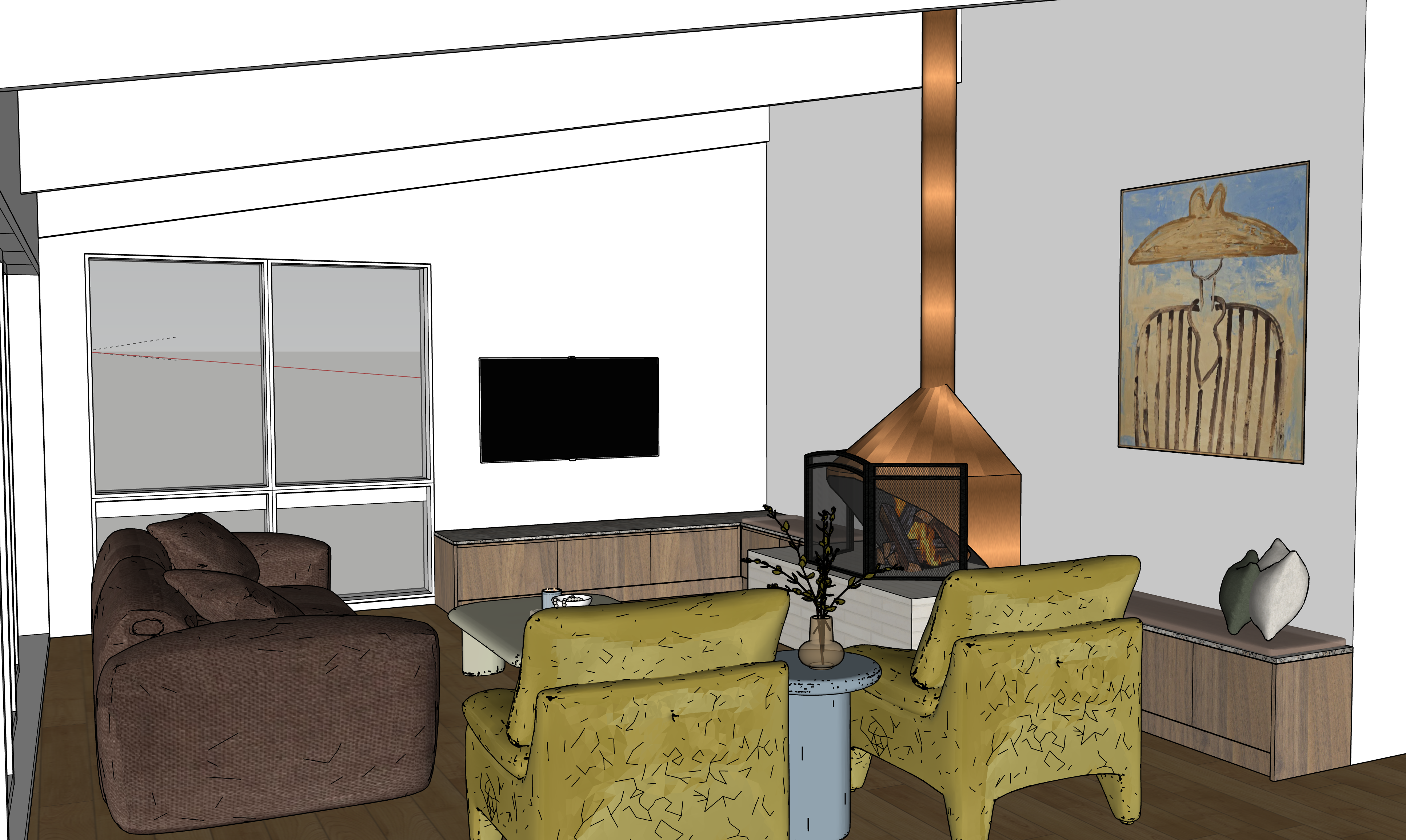 make occasional chair green as image has shown and remove bench seat back cushions and on occasional chair