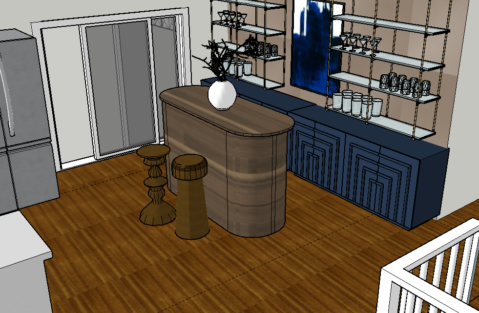 add natural light to the image coming from the window add led light to the shelves make the wall behind the shelves aged mirror