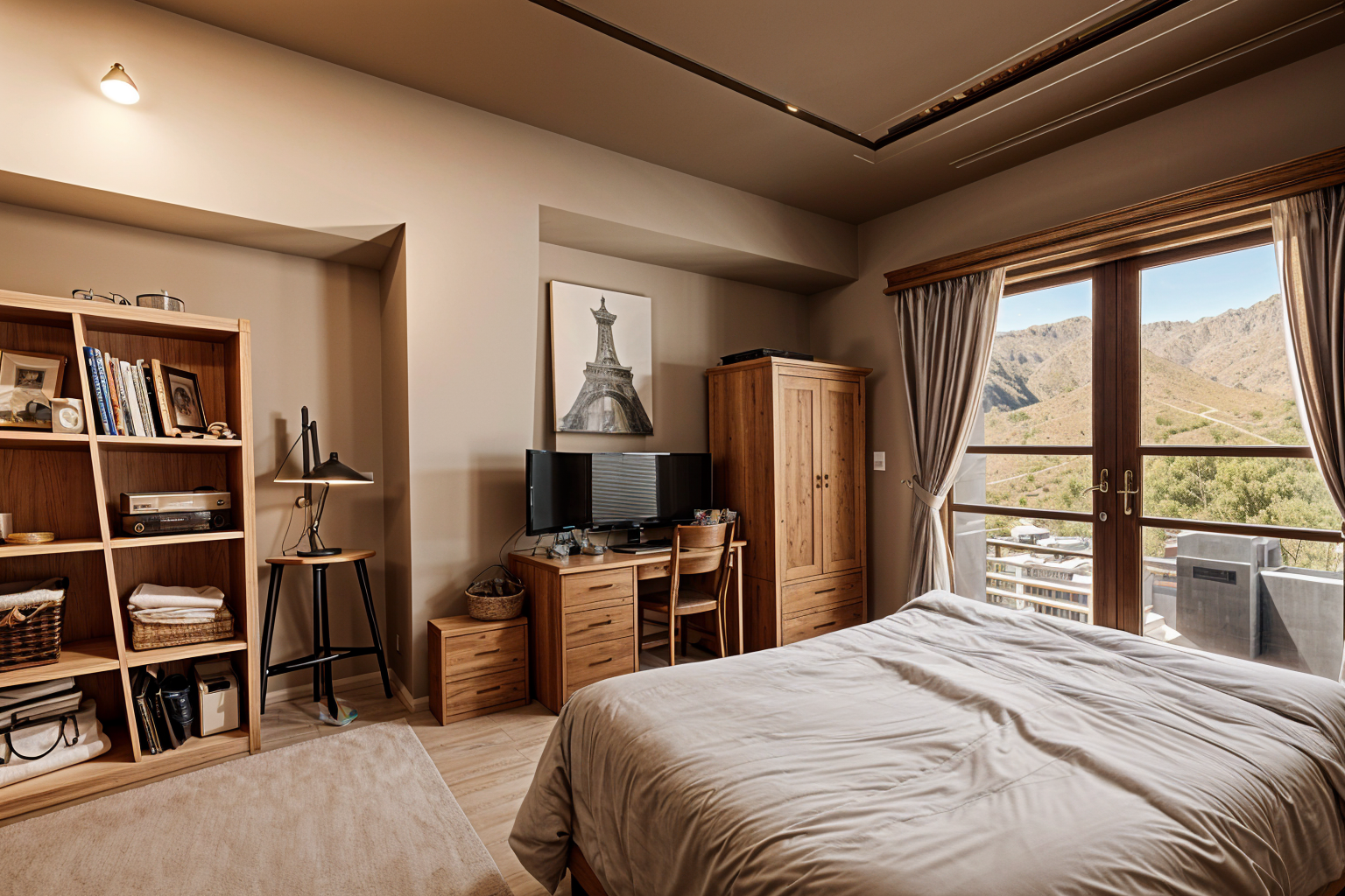 interior shot enhance the existing interior with a modern style in a warm warm tone make the room cleaner and more minimal maintain the original composition and angle of view
