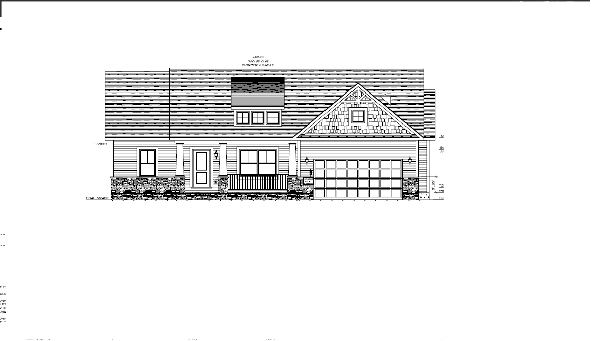 make as photorealistic as possible while keeping textures the same as selection professional landscaping in a lightly wooded scene with good lighting white siding black shingle roof black windows to match plan black front door white garage door no porch railing