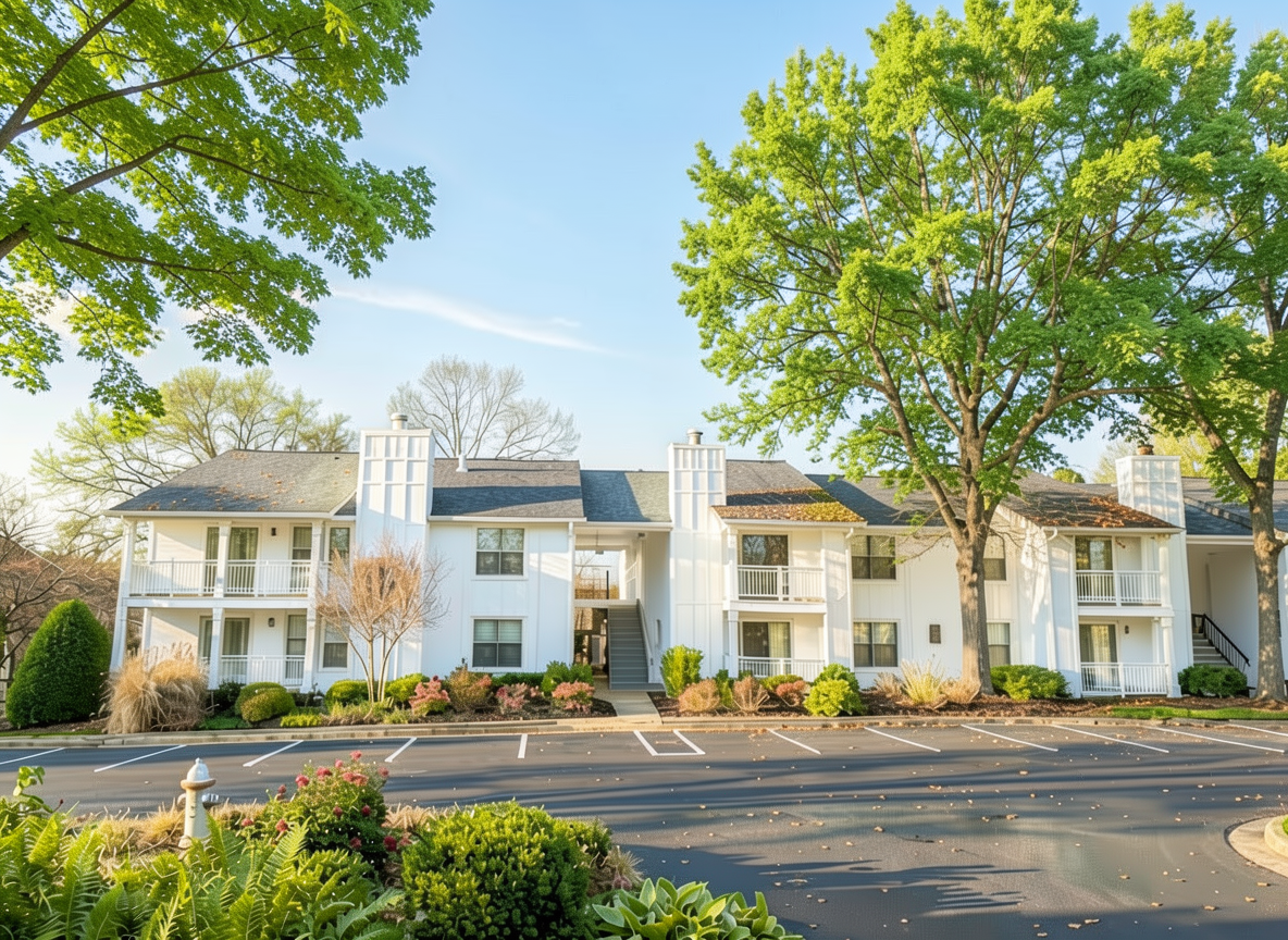 paint the building black paint all trim white dot not change the landscaping do not change the building geometry or camera angle