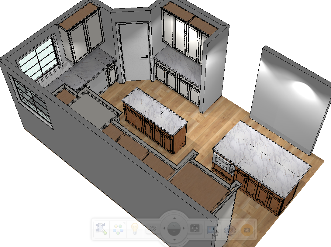 modern kitchen with warm floors white perimeter cabinets with two islands one narrow and one deeper