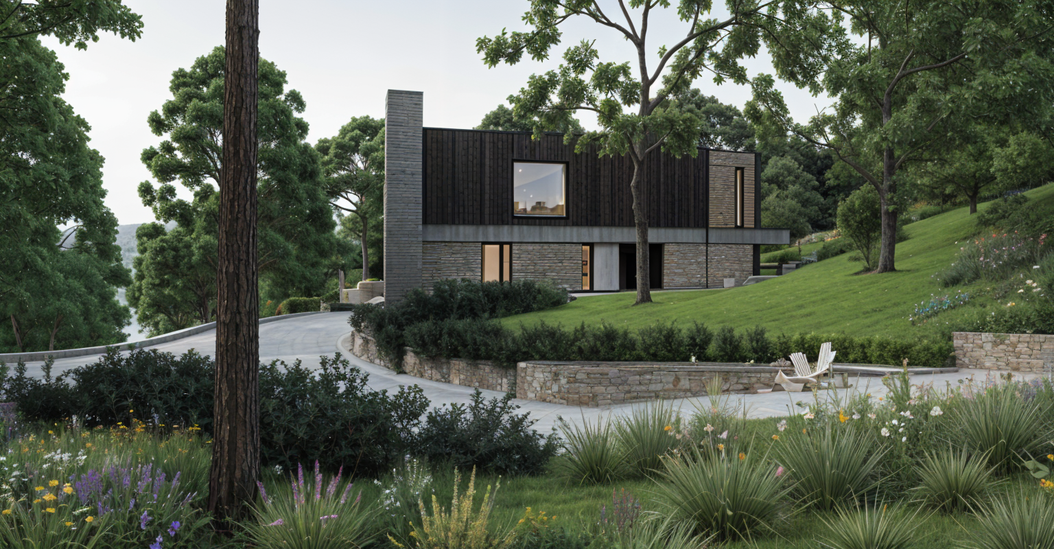 give this building a farmhouse modern vibe with white painted stucco and charcoal painted lower brick architecture
