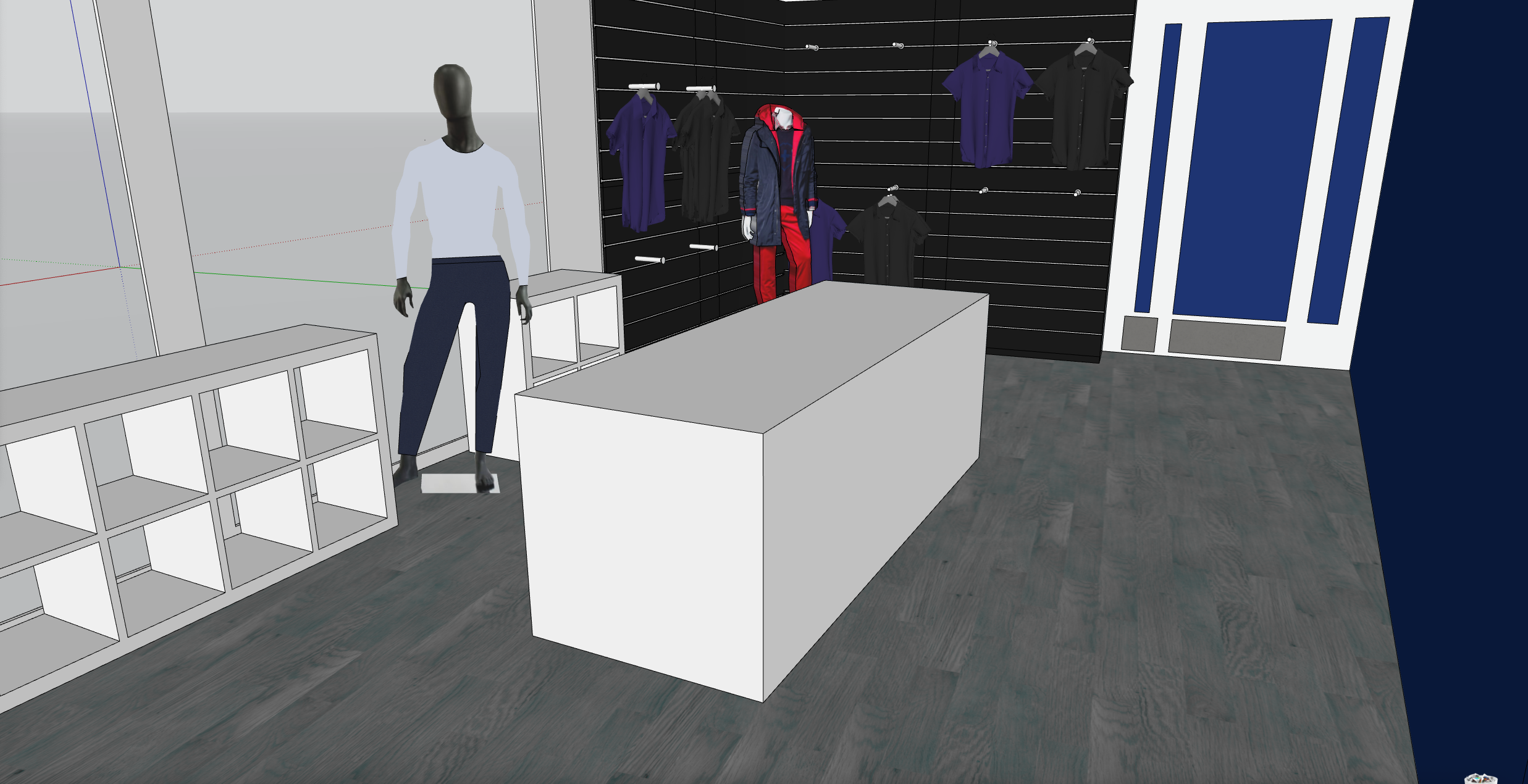 small merch store grayish wood on the floor from the window a view to quiet street with car passing by