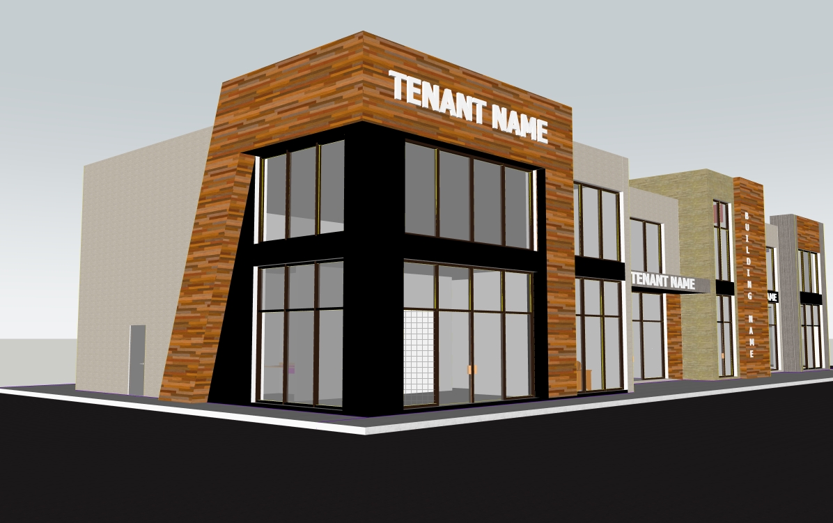 daylight with few clouds and commercial buildings in background