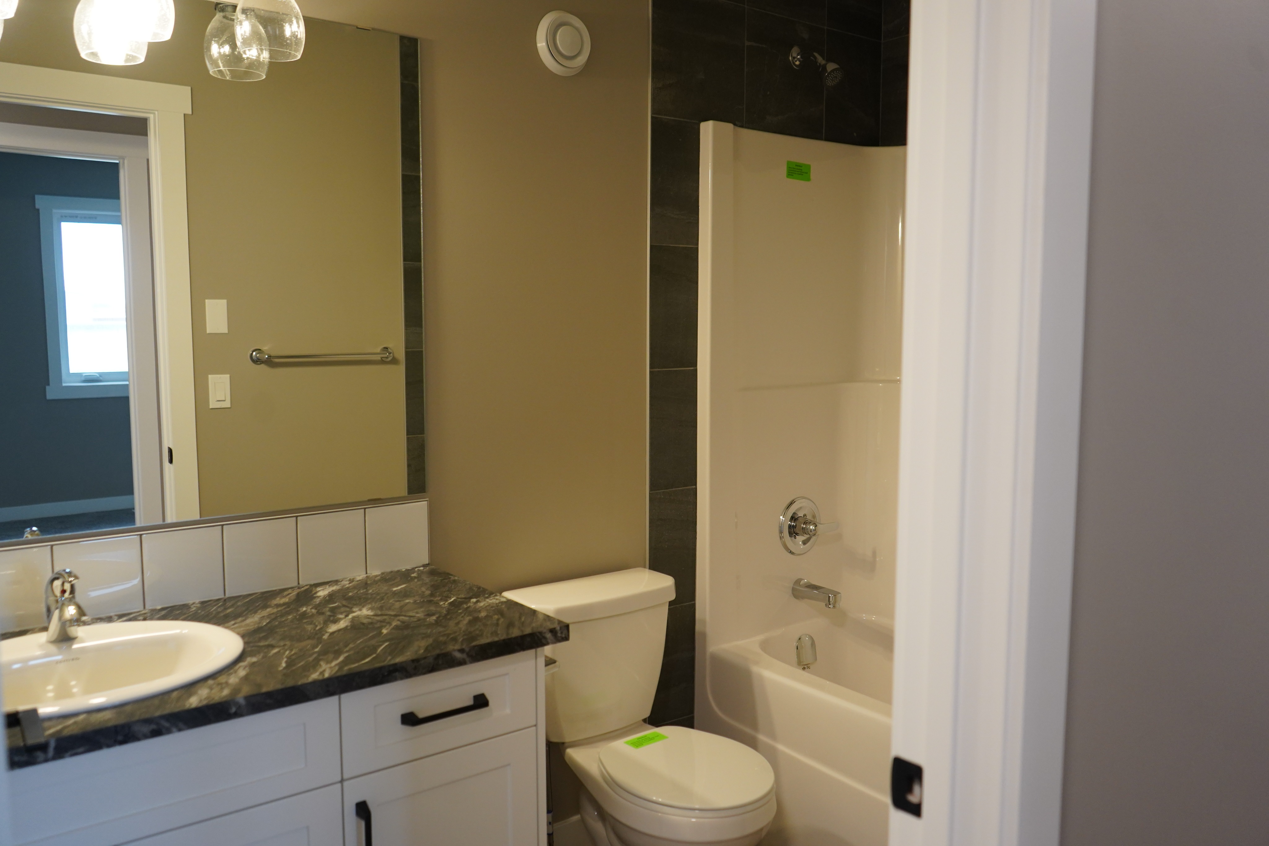 enhance the lighting in this bathroom turn on all the lights i want this bathroom to look finished and complete remove green tape from the toilet and wall