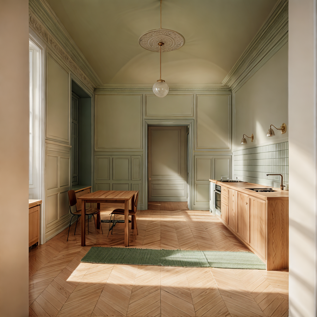 front view of a modern duplex with two garages with driveways in front in a neighborhood with other duplexes with parking in front use warm beige and taupe tones for the walls with subtle gray stone accents highlight the roof with a dark charcoal gray color add tan trim around the windows and doors the front doors should be a sleek gunmetal gray create a welcoming and serene atmosphere with soft natural lighting surrounded by lush green landscaping and a clear blue sky