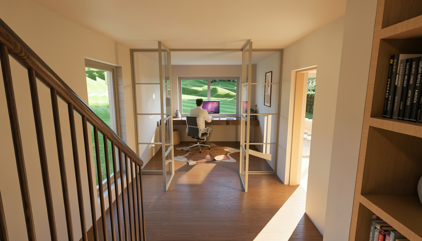 straighten the perspective of the image so that the closet in the back is vertical and does not look tilted do not change absolutley anything on the image