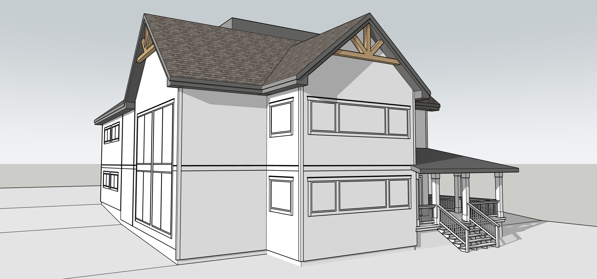 maison de style farmhouse revetement board and batten blanc au rdc revetement de planches horitales blanches aux pignons fenetres et portes noires maison entour e d arbres de foret mixte feuillus et conifere