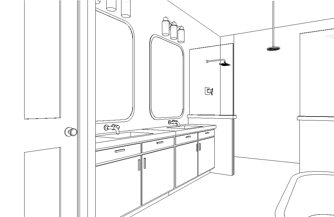 copy prompt a modern minimalist bathroom design darker oak flooring complements a light wood grained vanity and a cabinet with matte black handles a glass shower enclosure with elegant brass fittings completes the design the atmosphere is calm and relaxing accented by lush green plants hanging in black pots the lighting is soft and natural creating a relaxing spa like atmosphere the mirror is backlit the shower alcove with four shelves is illuminated from top to bottom by an led strip the fixtures are brushed copper the mirror reflects the smooth frameless white door