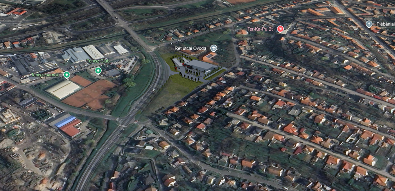 render an aerial view of a suburban landscape with a blend of autumn hues and vibrant details capture the essence of a small town with cozy houses featuring red and orange roofs scattered amongst lush greenery highlight the central building in modern architecture with cool gray tones and accents of bright red illustrate winding roads with smooth dark asphalt bordered by neat patches of dark green grass add the tennis courts with rich clay orange surfaces surrounded by natural green landscapes emphasize the overall atmosphere with a warm golden afternoon light casting soft shadows for an inviting and picturesque scene make more realisitc scene with a littel dull lights don t change anything