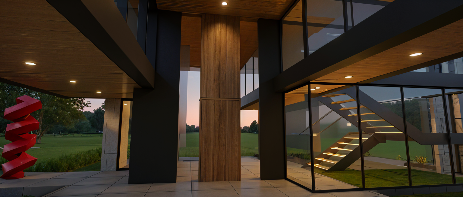 interior bright day time natural lighting soft shadows space is evenly lit down lights and pendant lights on white light 5000k lighting temperature interior photography realistic slightly reflective