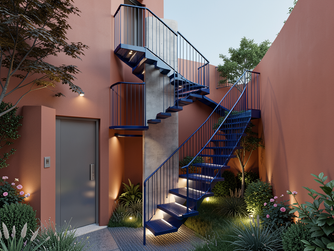 render a natural stone modern retail development with shop fronts looking out onto a manicured park with lawns landscaped borders to the left of the retail development is a stone 13th century bell tower and the orange building at the left of the image is a church both the church and the bell tower are built from a local beige stone and are gothic in style