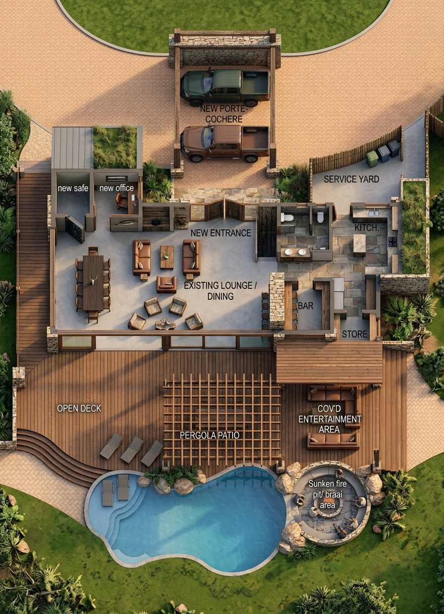 create a natural visualization keep the same shape of the house do not change the colors of the facade the layout of the windows or the doors