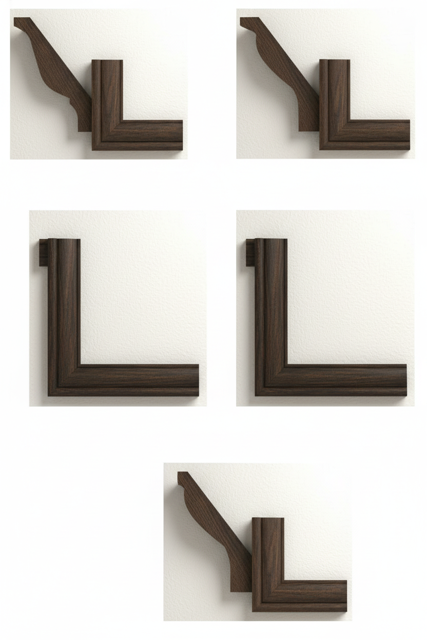 make all of these crown molding profiles the same color with natural lighting the bottom all straight square make the bottom profile the same view point as the four above