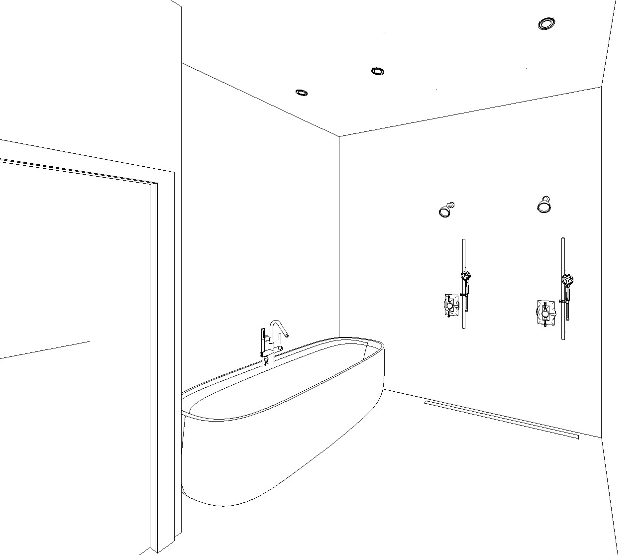 interior shot curbless shower add tile to tub area and shower area change fixtures to gold finish make wall tiles different marble