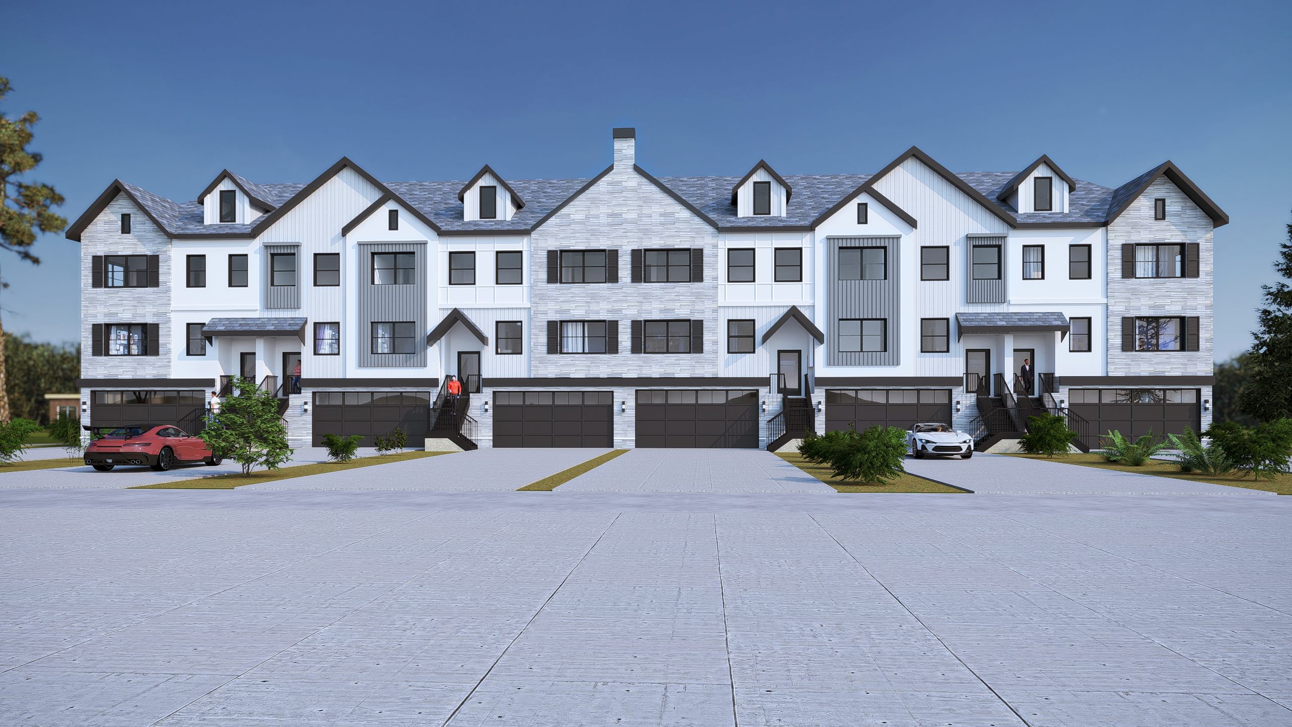 make it a sunny day at noon light with people and suv s parked on the driveway local street in front of the driveway