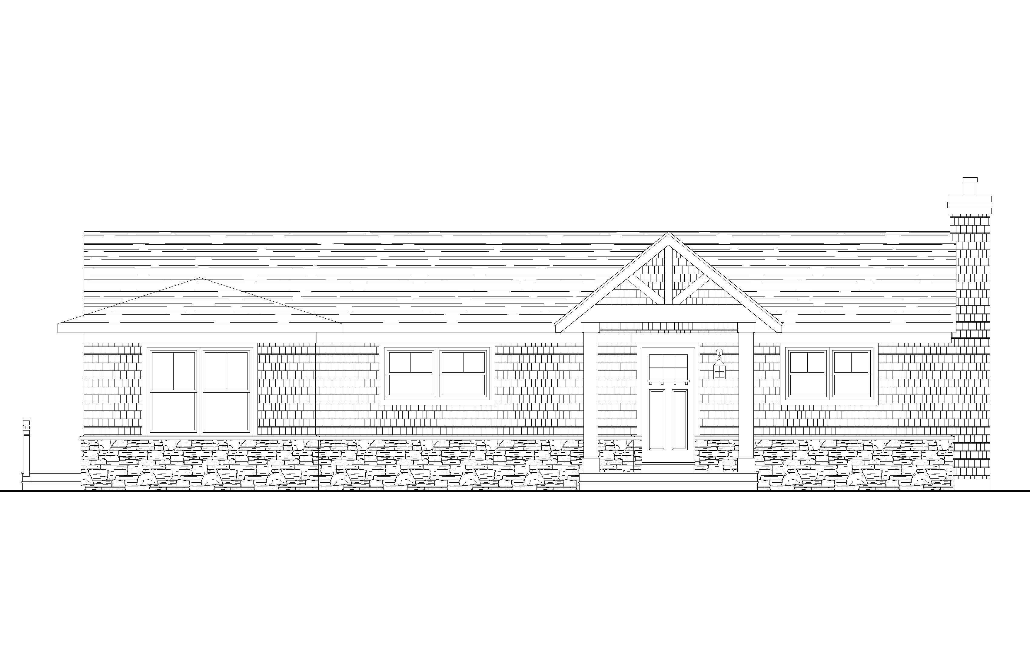 prairie style exterior shot use natural wood on the beams in the reverse gable with earthy stone in the base with shadows with a landscaped tree line architecture