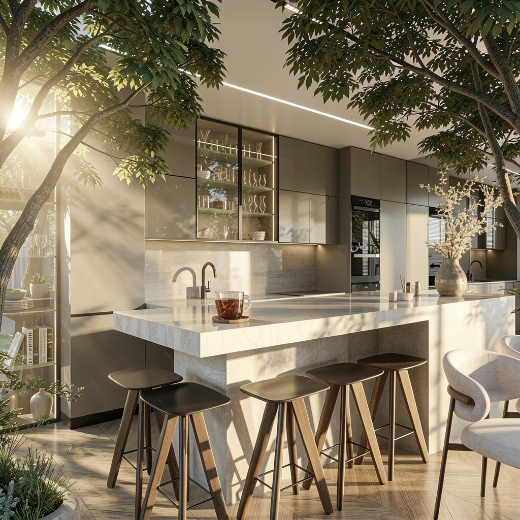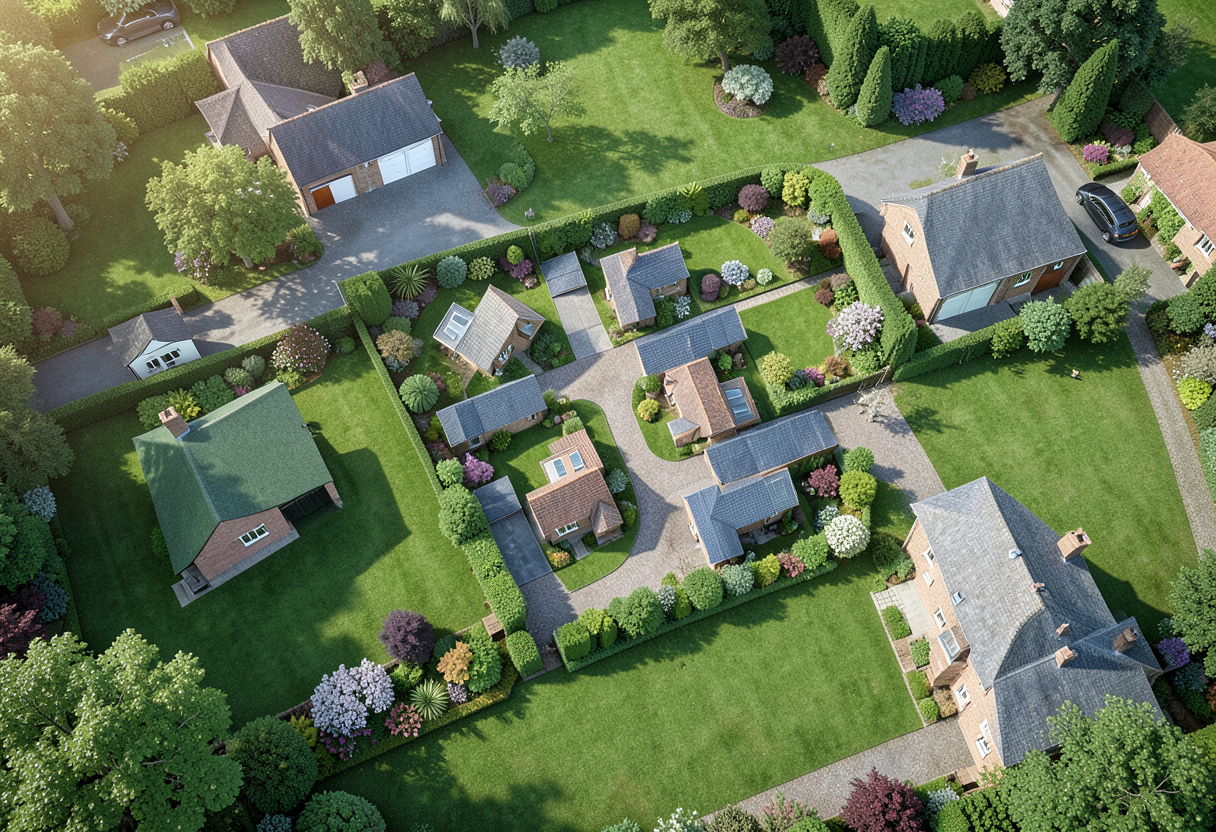 mixed brown tile roof bronze windows light taupe base color dark brown trim show multi color paver driveway and parking pad on the left solid garage doors no stone extend driveway to the left and right with a parking pad on the left side of structure add trim around garage doors