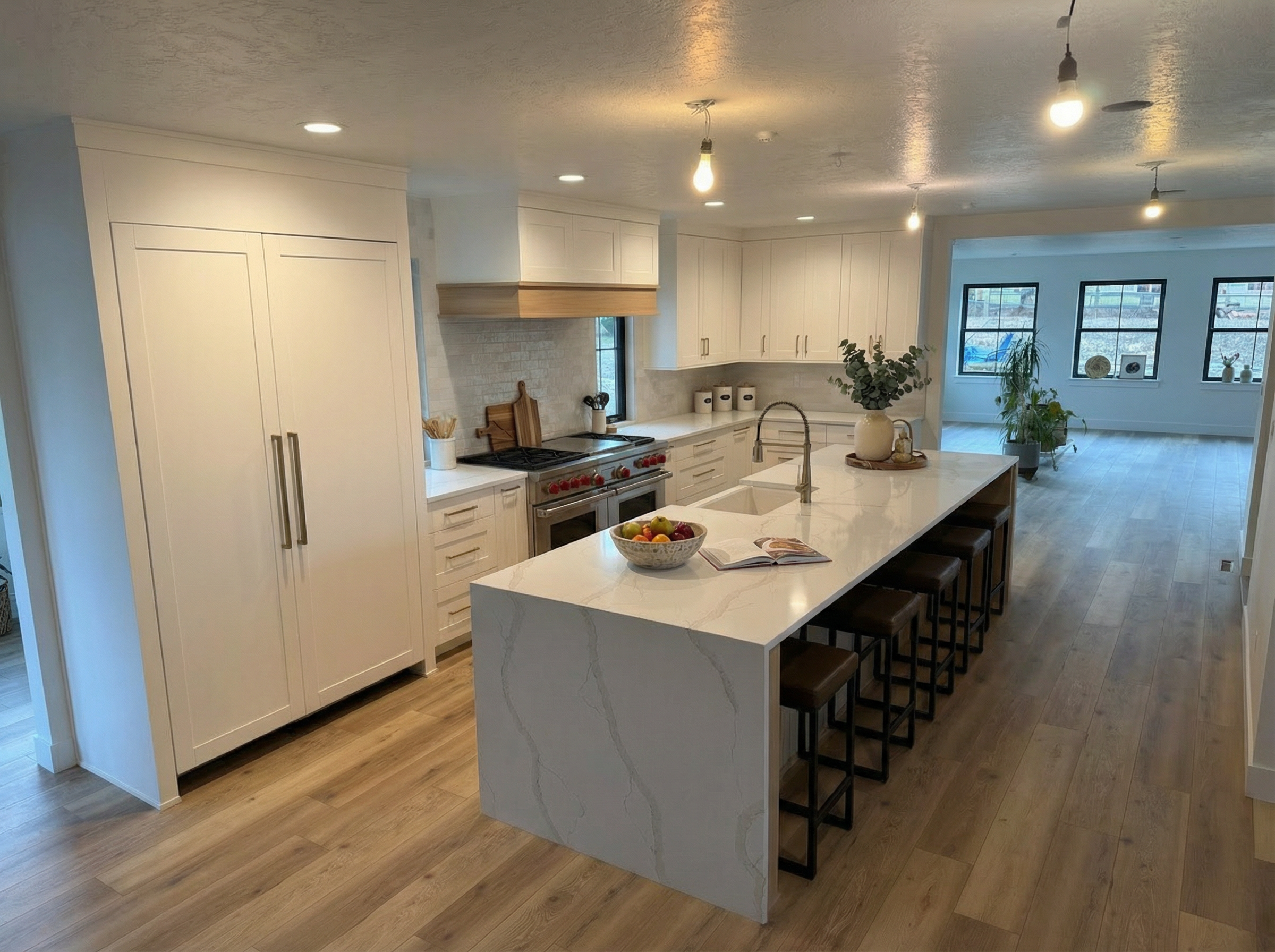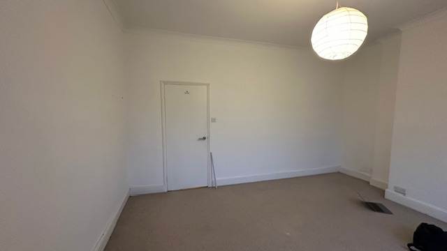 put built in wadrobes all along the back wall leaving a gap for the door in a modern neutral style off white