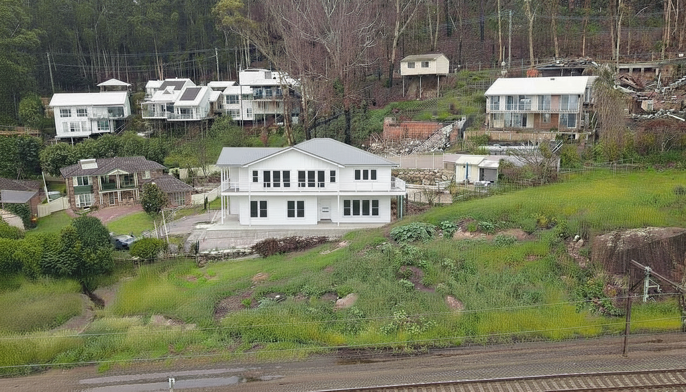 modern building to remain as existing finishes to change posts to be sandstone upper floor walls to be vertical white cladding ground floor external walls to be light beige architecture