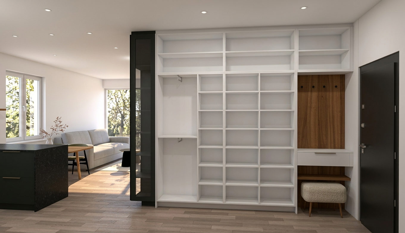 make photorealistic soft fabric fluffy sofa white tiles floor
