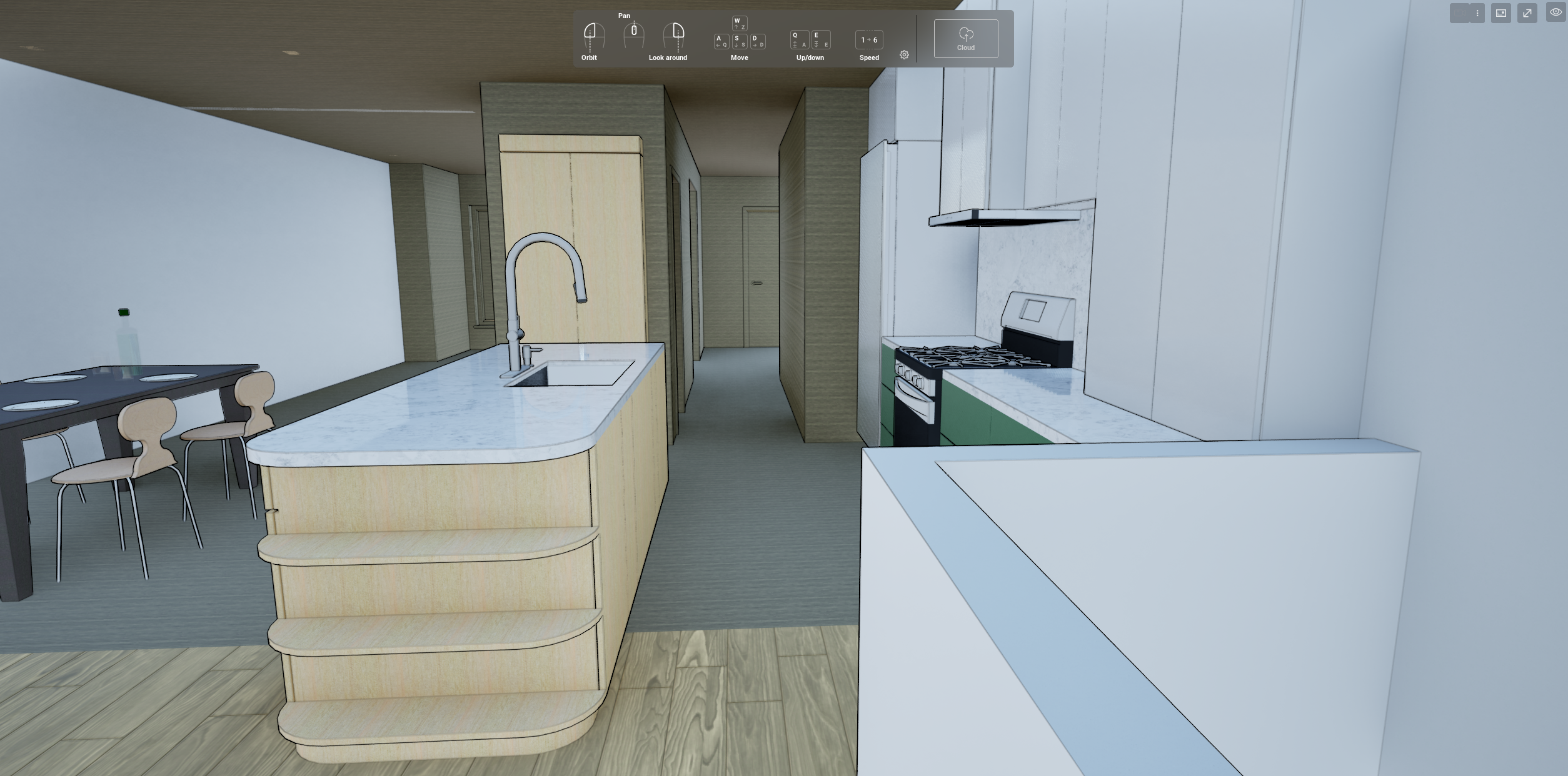 make into a warm modern cozy residential interior scene of a kitchen with dinner prepared maintain geometry of the scene