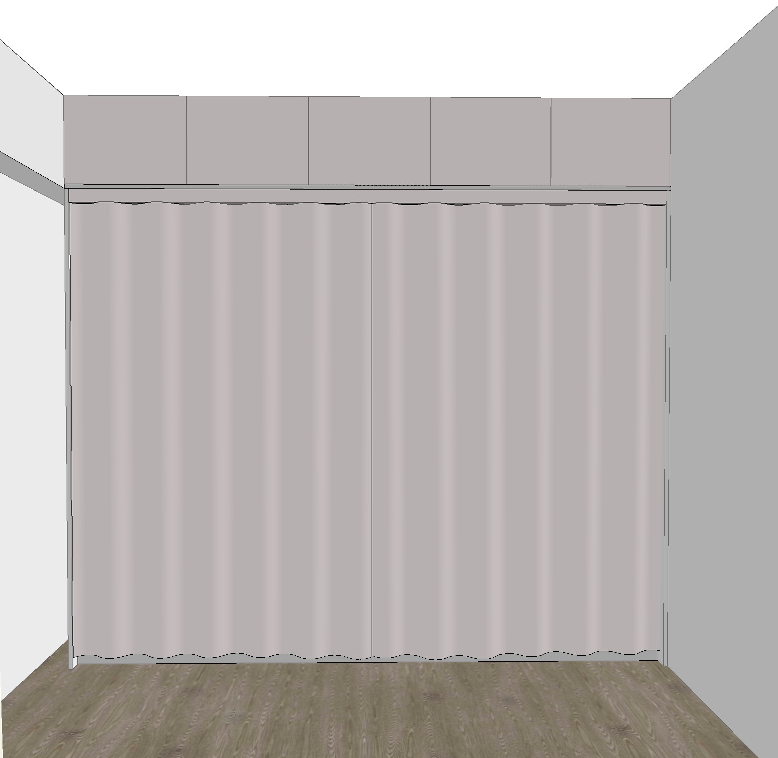 curtains in a modern minimalist room featuring soft dove gray fabric with gentle folds surrounding walls are a light neutral gray exuding a calming atmosphere floor is a warm textured hardwood with natural brown tones soft diffused lighting creates a serene peaceful ambiance highlighting the elegance and simplicity of the space
