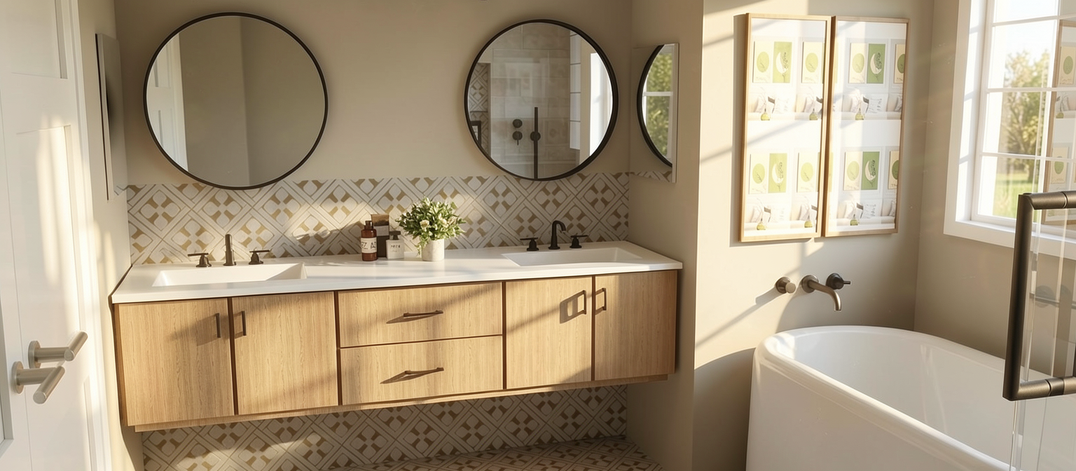 vous avez dit produire une image photo r aliste hd de cette image le calepin de sol est en 3 marbres palissandre classic travertin clair maroquina diff rents les clairages doivent tre repr sent s allum s le laiton doit tre bross les lustres sont en pl tre
