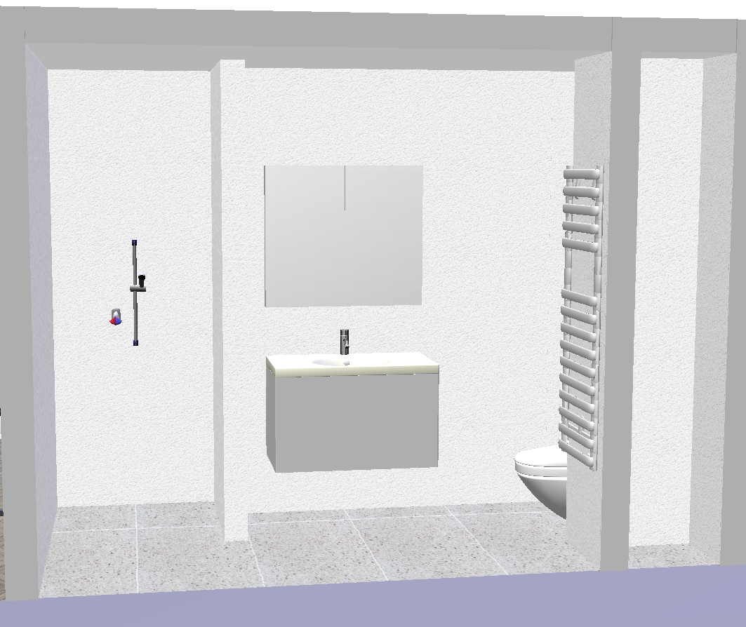 genau dieses rendering berarbeiten fotorealistisches innenraum foto exakt gleiche perspektive und kameraposition wie das hochgeladene referenzbild 100 identische raumgeometrie exakt gleiche m belanordnung weiches nat rliches tageslicht leicht schr g einfallende sonne ganzer raum zus tzlich k nstlich ausleuchten sanfte realistische schatten blickrichtung ist nach osten sonnenlicht kommt von s den realistische materialien echte holztexturen stoff mit leichten gebrauchsspuren hochwertige oberfl chenreflexionen lavabo inklusive unterbau aus marmor collemandina grigio in braungrau dunkel im unterbau im obersten drittel eine griffmulde ber die ganze breite hinter dem lavabo eine vola wandarmatur edelstahl vollkommen rahmenloser und bis auf f nf zentimeter versenkter und hinterleuchteter spiegelschrank links neben dem lavabo ist die dusche thermostatmodul axor select mit stabhandbrause und grosser wandtellerbrause vertikales led ber die ganze raumh he ganz links hinten in der dusche w nde in der dusche und boden collemandina grigio in braungrau alle anderen sichtbaren w nde sind sichtbeton die toilette ist in der nische hinten auf der rechten seite moderne toilette vertigo wandh ngend in farbe weiss matt tecelux bet tigungsplatte toilettenpapierhalter in edelstahl an der wand links von der toilette an der grossen wand handtuchradiator in edelstahl an der fl gelwand auf der rechten seite mit weissen badet chern links und rechts vom lavabo handtuchstangen und handt cher in weiss schwarze steckdose rechts vom lavabo schwarze runde deckeneinbauspots in der nische vorne rechts ist ein unsichtbarer schacht ohne irgendwelche installationen sehr moderner minimalistischer look nat rliche farbwiedergabe golden hour feeling das bild muss wie eine professionelle fotografie aussehen es soll ein echtes und reales foto sein canon eos r5 35 mm festbrennweite f 2 8 hyperrealistisch dslr qualit t raw aufnahme 8k aufl sung extrem scharf perfekte tiefensch rfe professionelle architekturfotografie