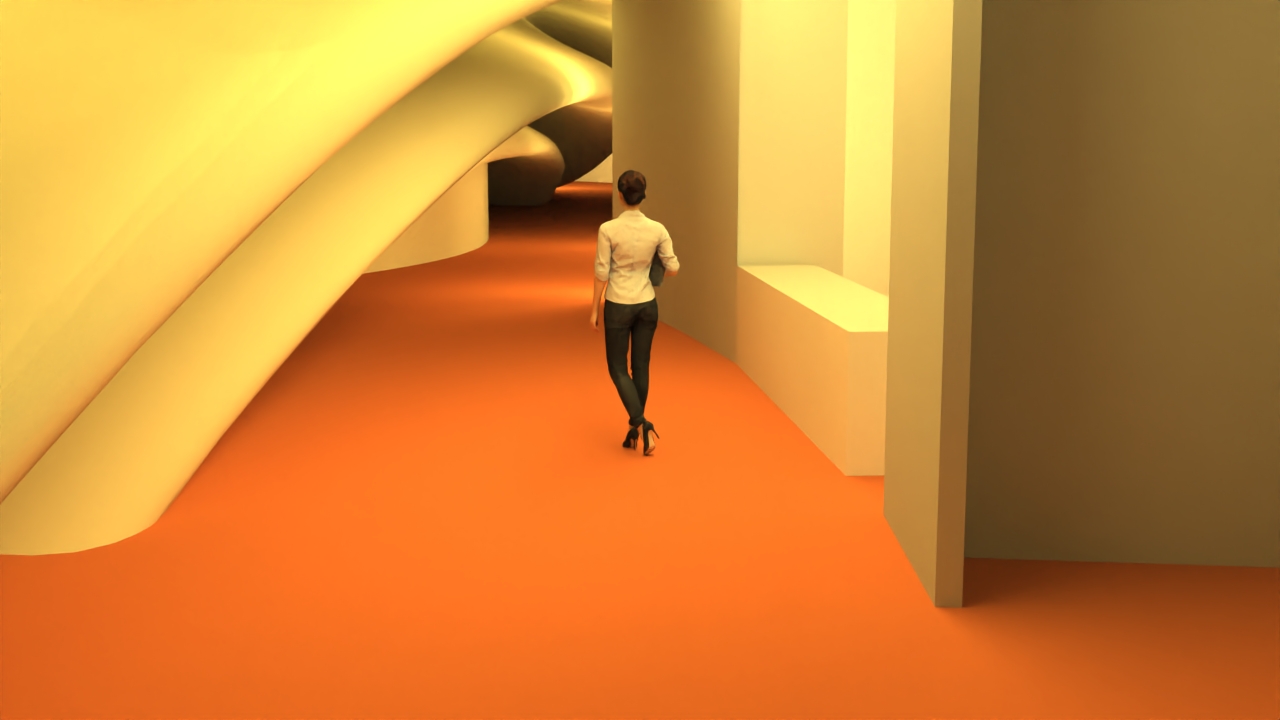 final prompt golden hour mammoth fossil skeleton rough surfaces natural light a monumental hyperrealistic architectural interior featuring vast undulating hand crafted concrete forms with rough organic surfaces resembling carved stone or weathered earth the space is defined by flowing bridges ramps and sculptural voids that create dynamic multi level circulation golden hour sunlight floods the space through massive floor to ceiling glazed facades and irregular skylights above casting long warm beams of light that intensify the rich textures of the rugged walls the natural light bathes the interior in a soft amber glow creating deep elongated shadows that emphasize the tactile materiality of the surfaces at the heart of the open atrium a full mammoth fossil skeleton is dramatically displayed suspended or mounted within the open space its towering ancient form contrasts against the modern cave like architecture bathed in a halo of golden light people of varying scale interact casually with the exhibit adding a lively human atmosphere to the raw monumentalism of the environment the mood is luminous majestic and slightly surreal a seamless fusion of natural history and contemporary architecture key elements surface rugged hand troweled concrete or plaster rough visible imperfections lighting warm saturated golden hour sunlight long shadows glows across textured walls atmosphere majestic airy timeless subtle urban landscape visible outside through windows camera perspective slightly wide angle emphasizing depth vertical scale and flowing circulation paths architecture