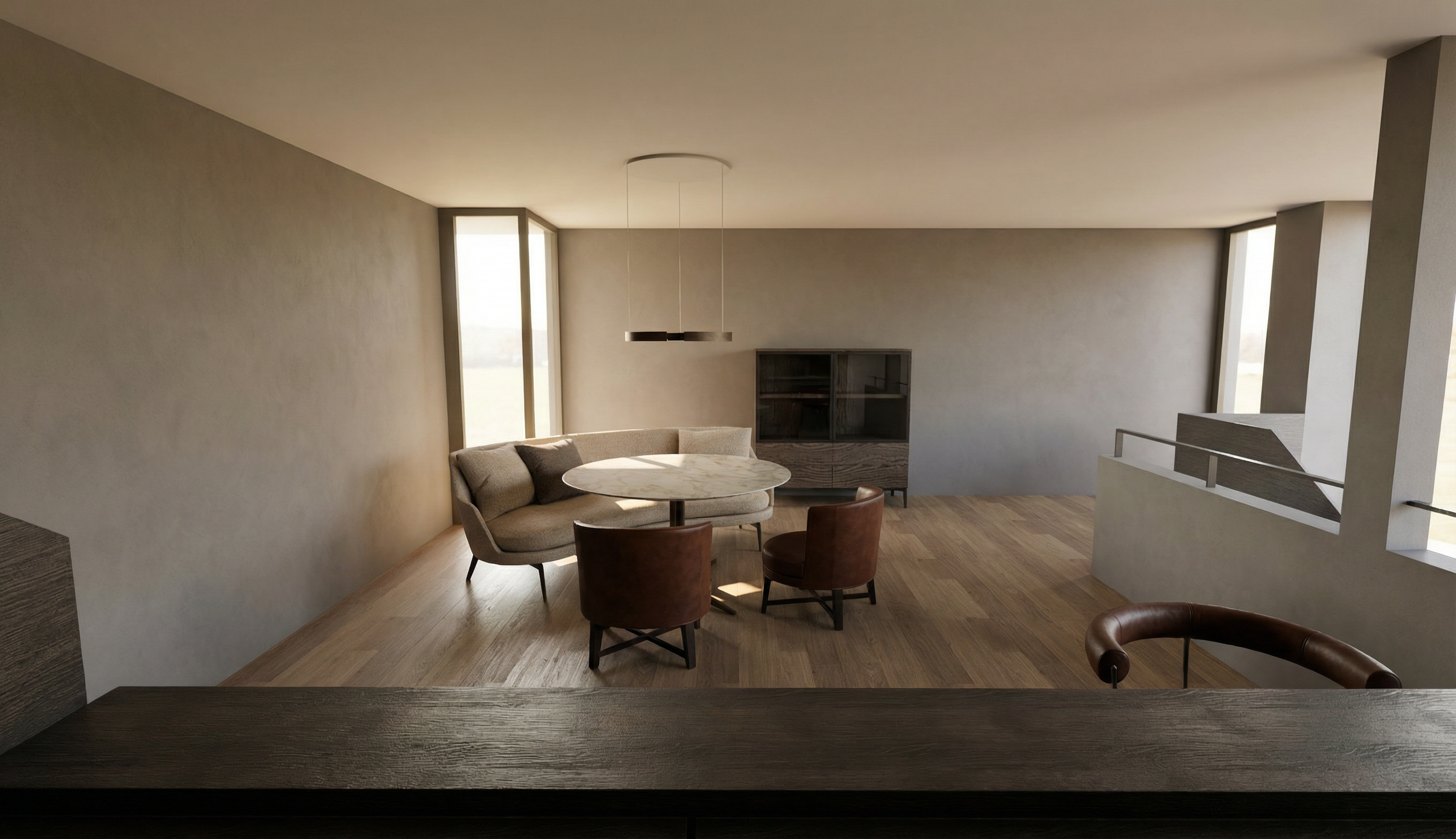 realistic interior shot natural warm daylight keep materials