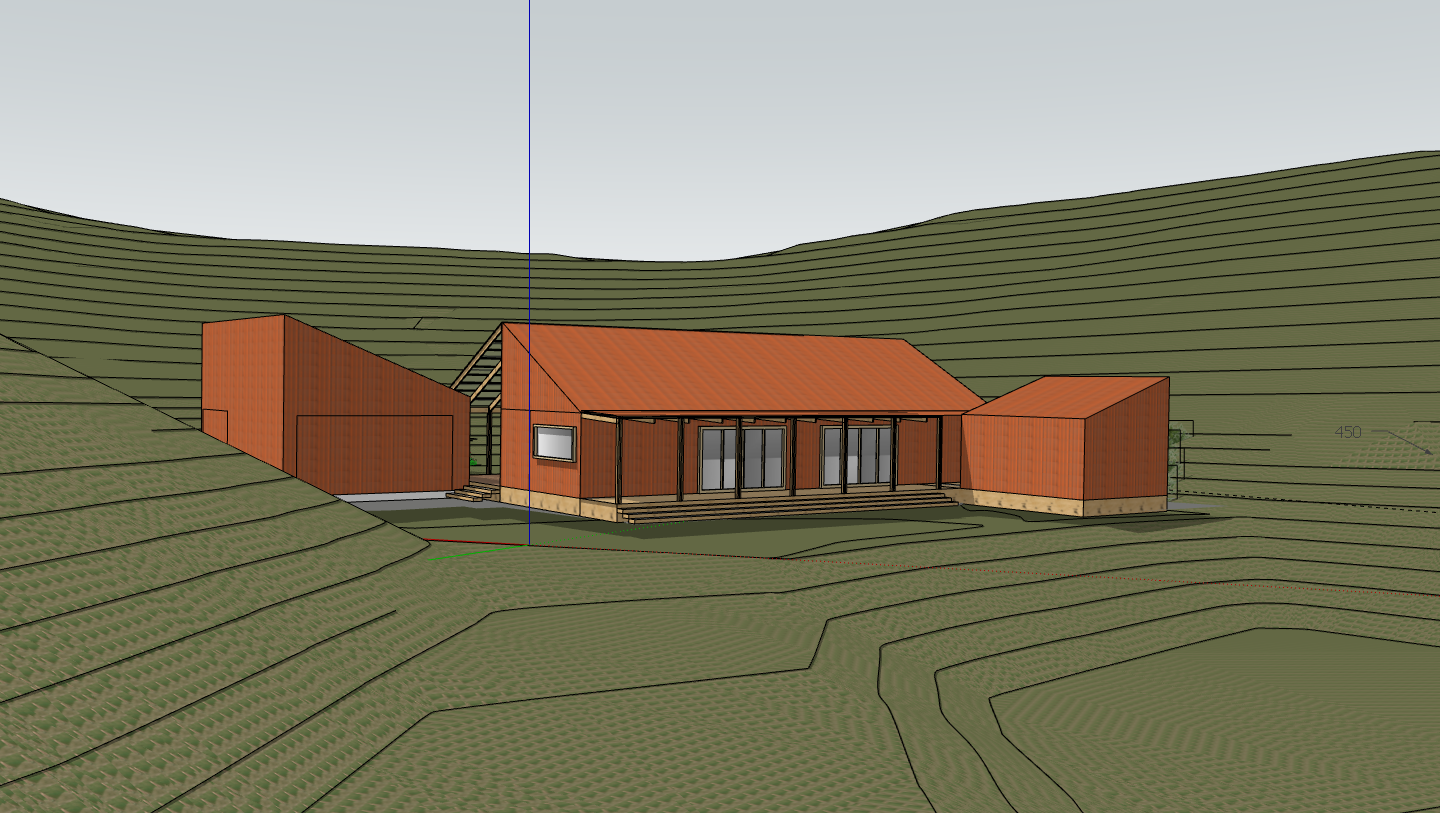 a house clad in scoria red corrugate steel surrounded by nz native bush hills the verandas are made from nz pine