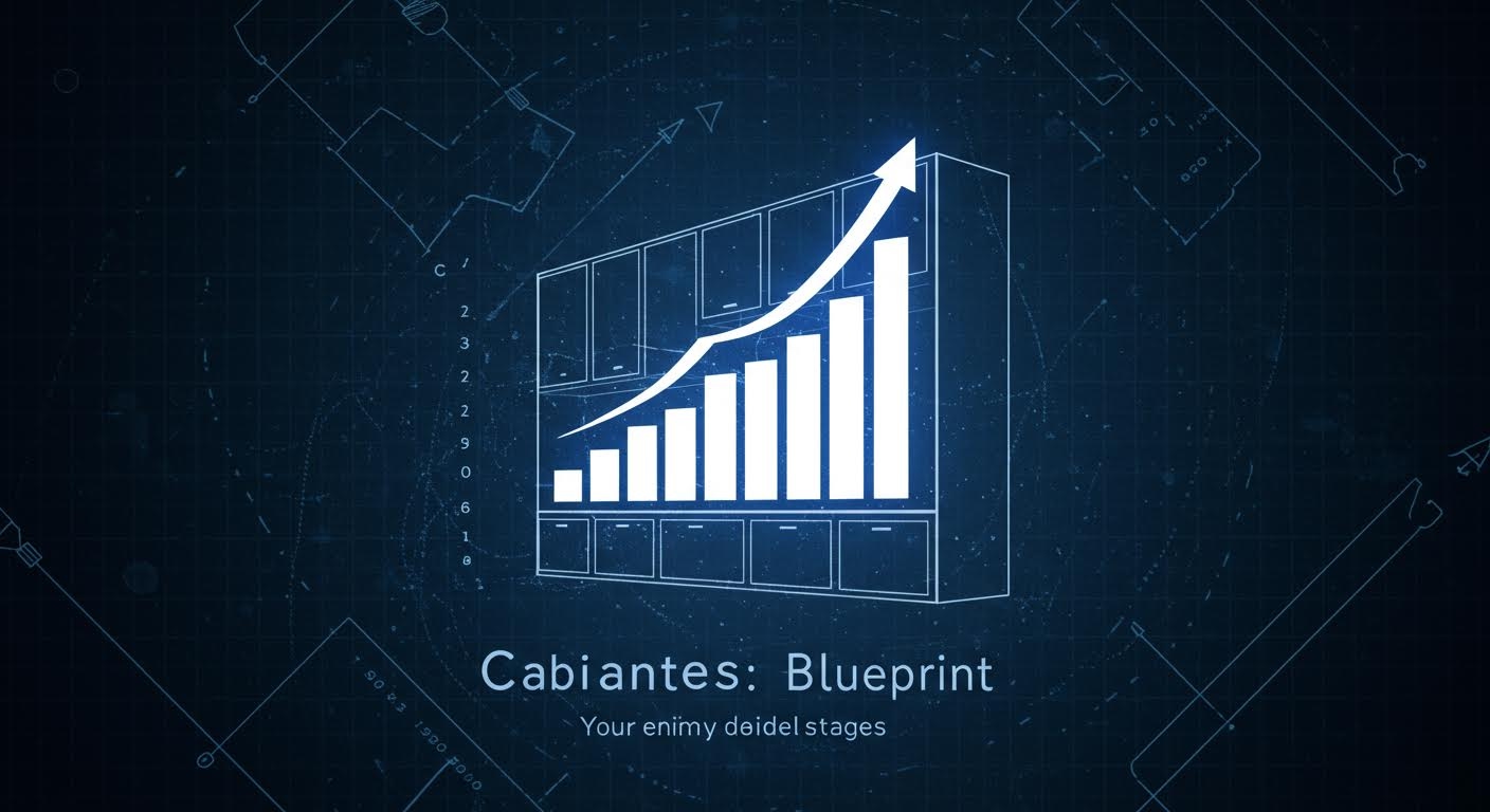 keep the image the exact same but change the cabinet colors to white and the text should say cabinet sales blueprint and on a line below quote smart get paid