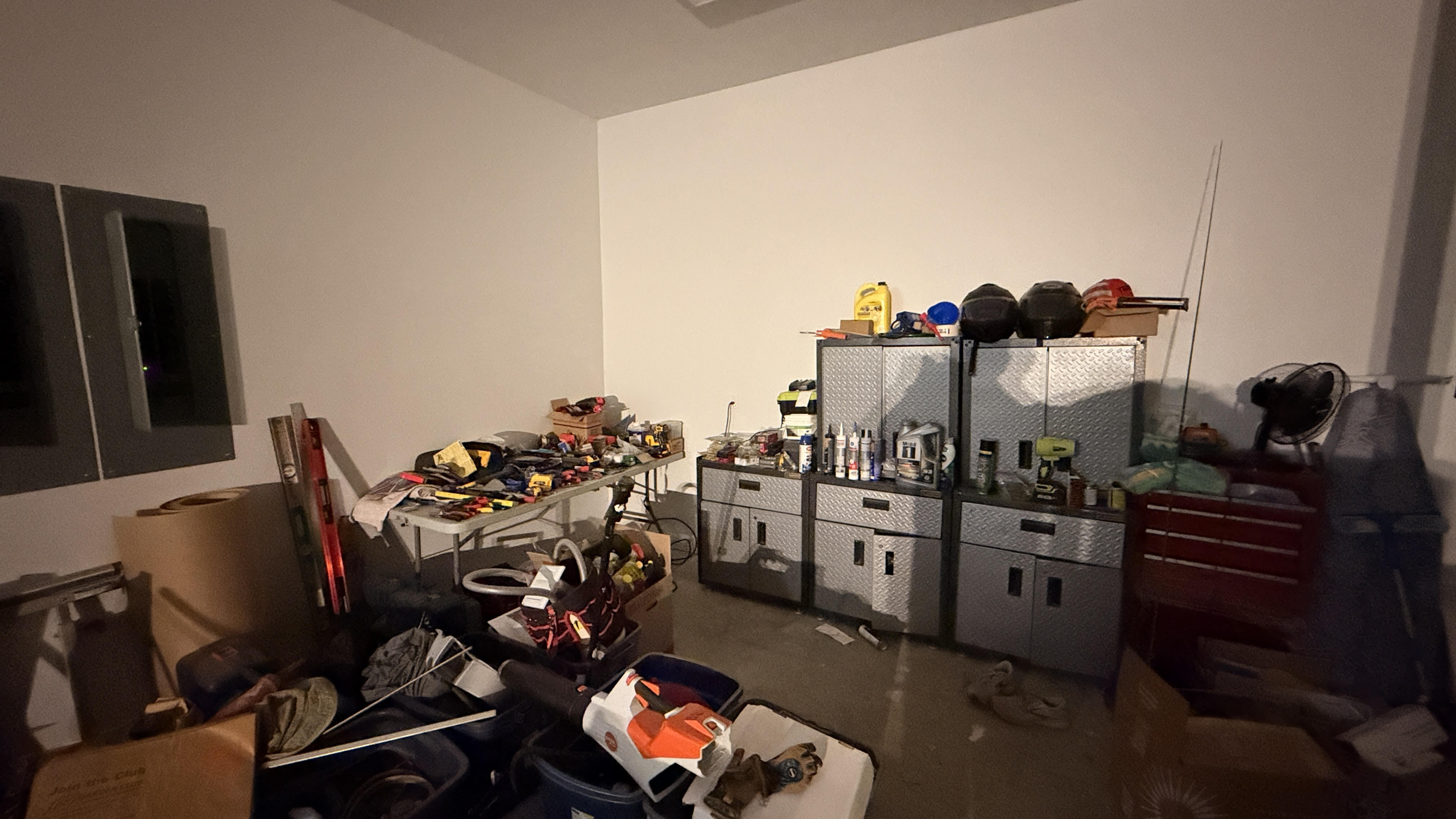 use the gladiator storage system i am showing give me some ideas of how i can organize all of my tools i can also buy a 48 x 72 tall wide gladiator storage closet to hide some of those tools