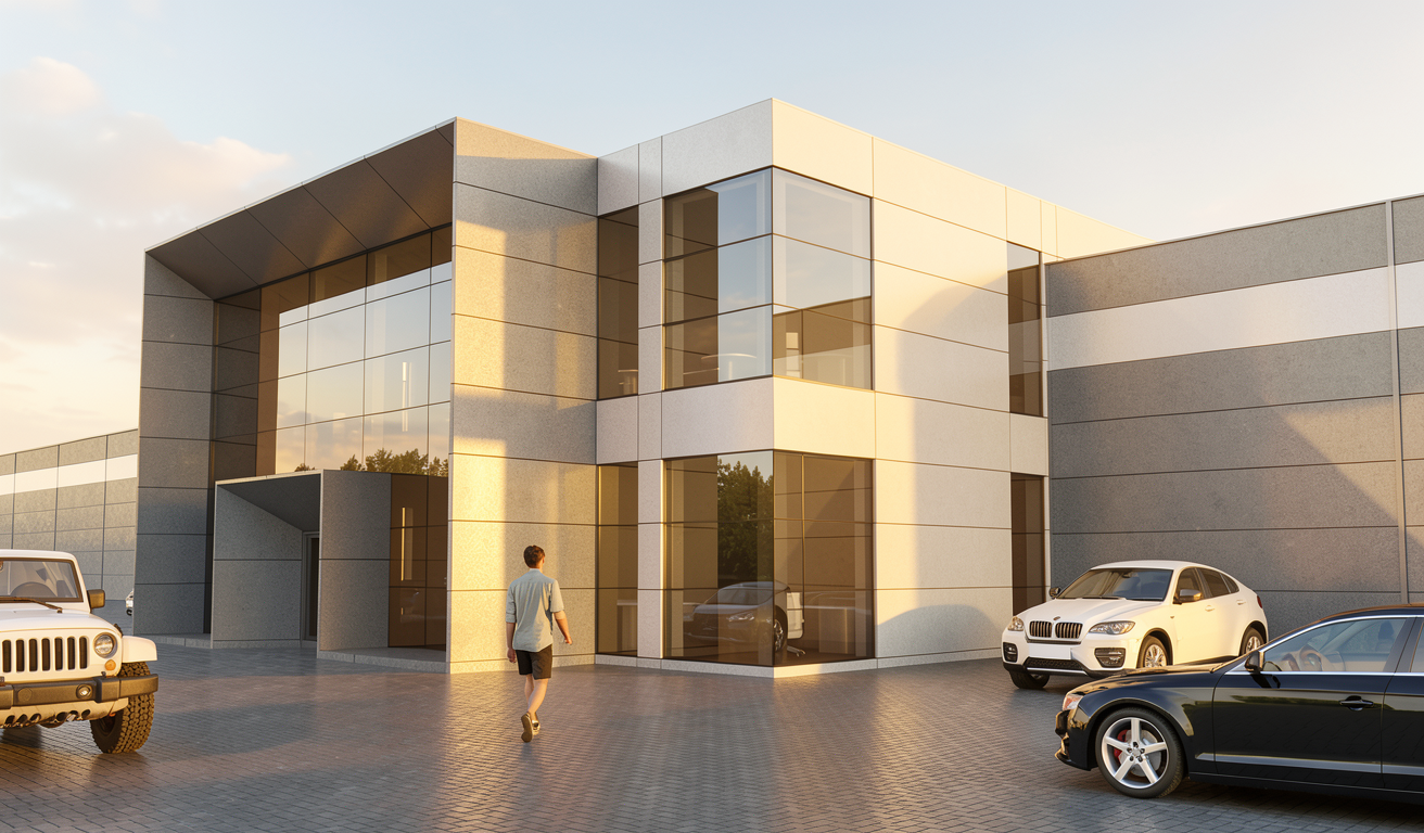 replace the house facade with modern prolin style facade panels plastic cladding panels with wood texture keep the original building shape windows roof and surroundings unchanged facade details horizontal cladding panels subtle wood grain texture modern minimalist design colors anthracite light oak teak choose realistic match visible clean joints with shadow gaps matte slightly textured material natural lighting realistic shadows photorealistic high detail preserve original proportions and perspective