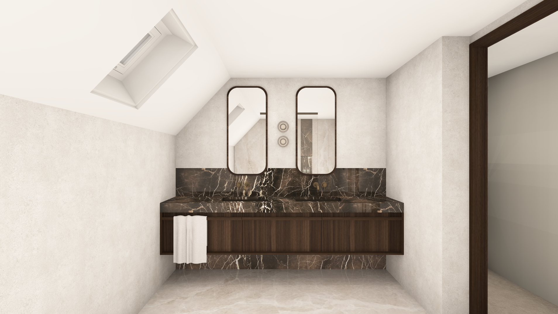 transform this image into an ultra realistic 3d photorealistic render preserve the exact original perspective camera angle proportions composition and geometry without any distortion or structural changes strict constraint do not add remove redesign or reposition any objects elements materials or lighting do not introduce new light sources fixtures or design features everything must remain exactly as in the original image refine and enhance all materials to a high end interior standard using physically accurate pbr textures materials may be improved in quality and realism but must remain consistent with their original intent and placement do not introduce unrealistic or unrelated materials replace the floor with light natural stone elegant and refined with a soft subtle gloss finish the stone should have a calm minimal appearance with delicate and understated veining or texture no heavy patterns or strong contrasts create a warm hotel chic atmosphere with a refined and upscale look use a harmonious palette of warm neutrals beige champagne soft browns rich tones and elegant finishes apply soft balanced lighting with reduced contrast avoid harsh highlights and deep shadows use gentle transitions between light and shadow soft ambient illumination and a warm color temperature to create a calm and luxurious mood use a professional full frame camera look with realistic depth of field accurate exposure and soft tonal range no harsh contrast maintain clean flawless surfaces no dust no scratches no damage ensure a high resolution sharp output 8k quality with lifelike colors and a premium interior design feel do not redesign the space only enhance material quality and atmosphere no stylization or artistic reinterpretation