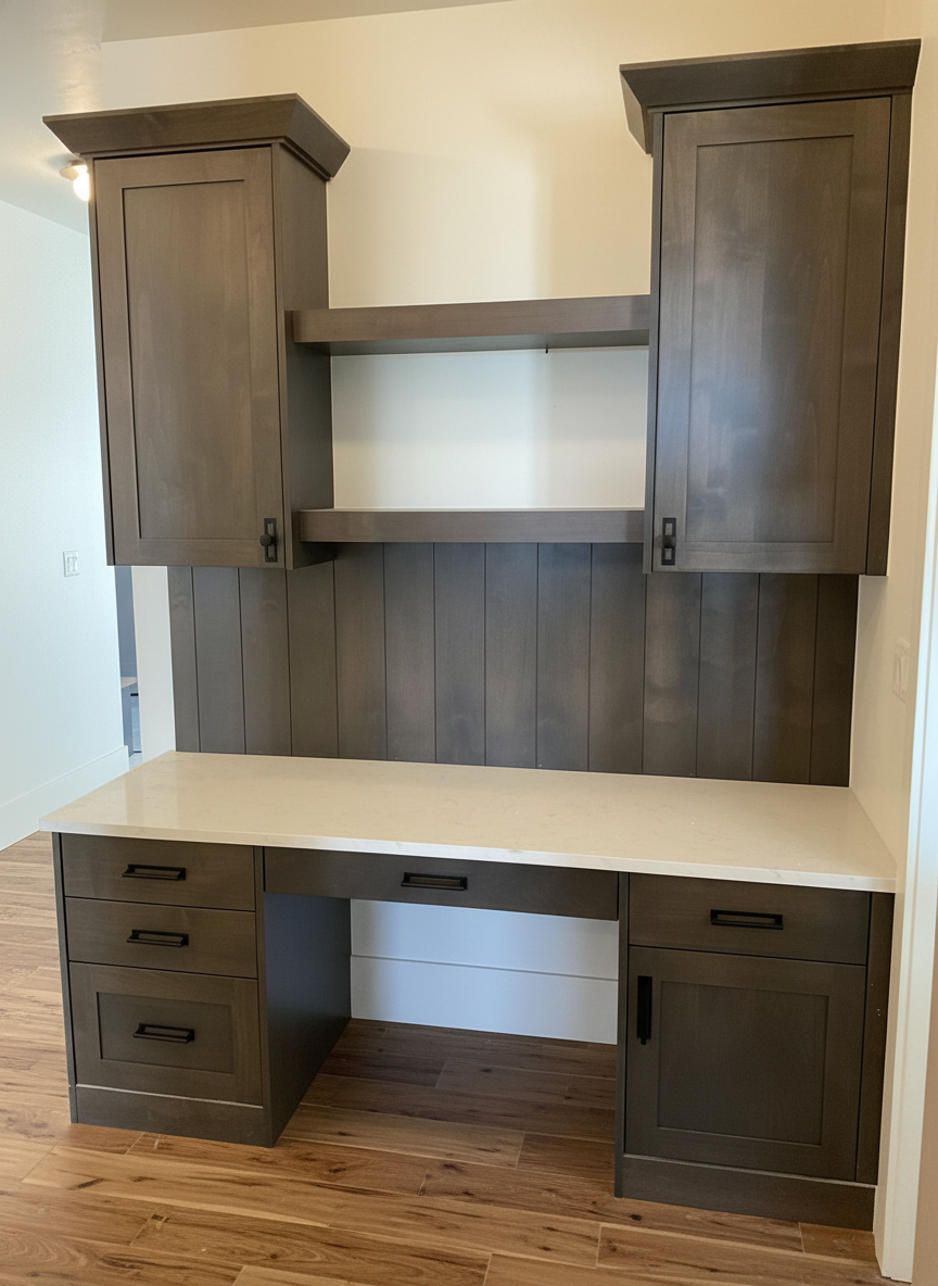 add flooring clean cabinets remove construction materials add under counter wine fridge style shelves as beverage bar