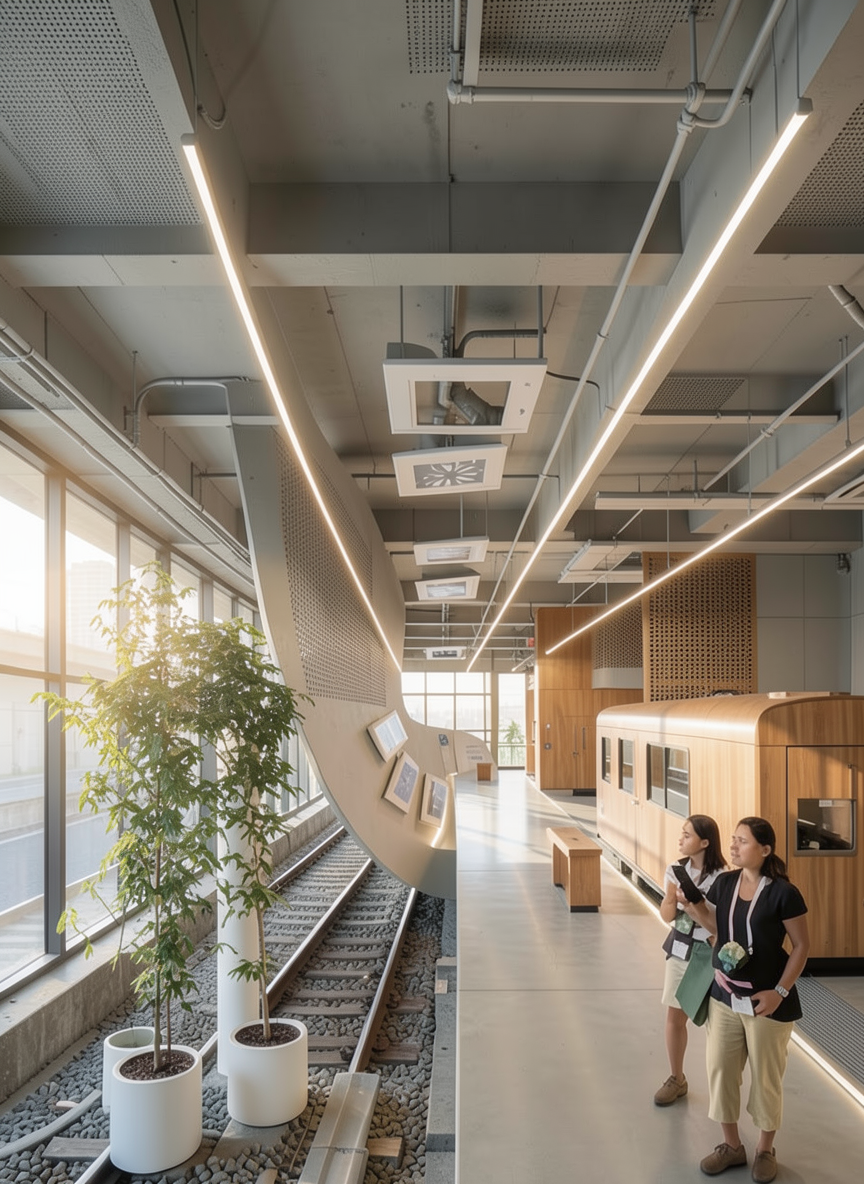 do not change model and finishes texture maintain wood planks at the top of concrete stairs daytime