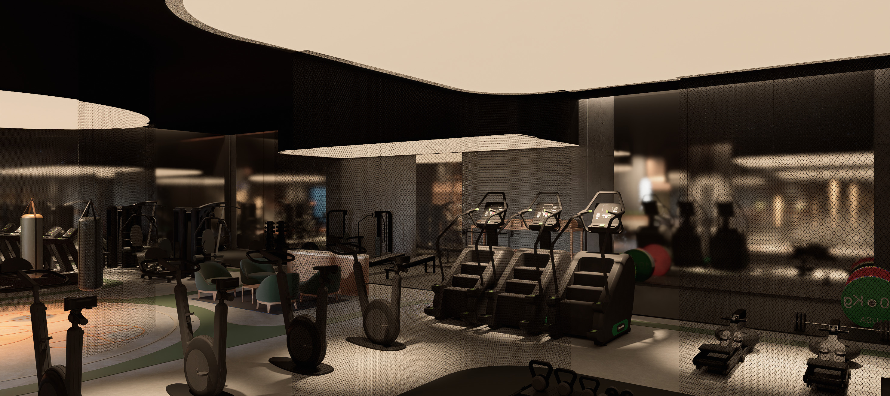 cyberpunk upscale gym spa luxury digital interface calm serene