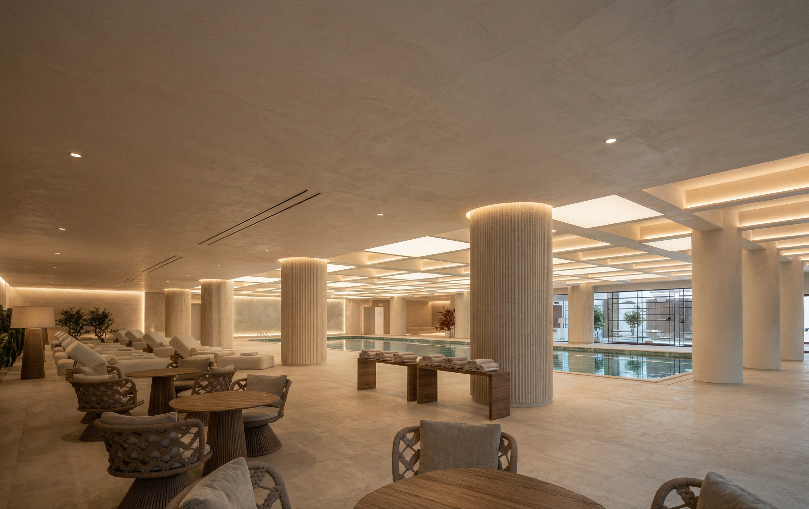 keep the lighting and colour temperature as it is make the lighting a little more sunset golden hour enhance the grill that is at the back keep everything else as it is make it photorealistic make the sky a little more crisp the wall lamp lighting should be softer