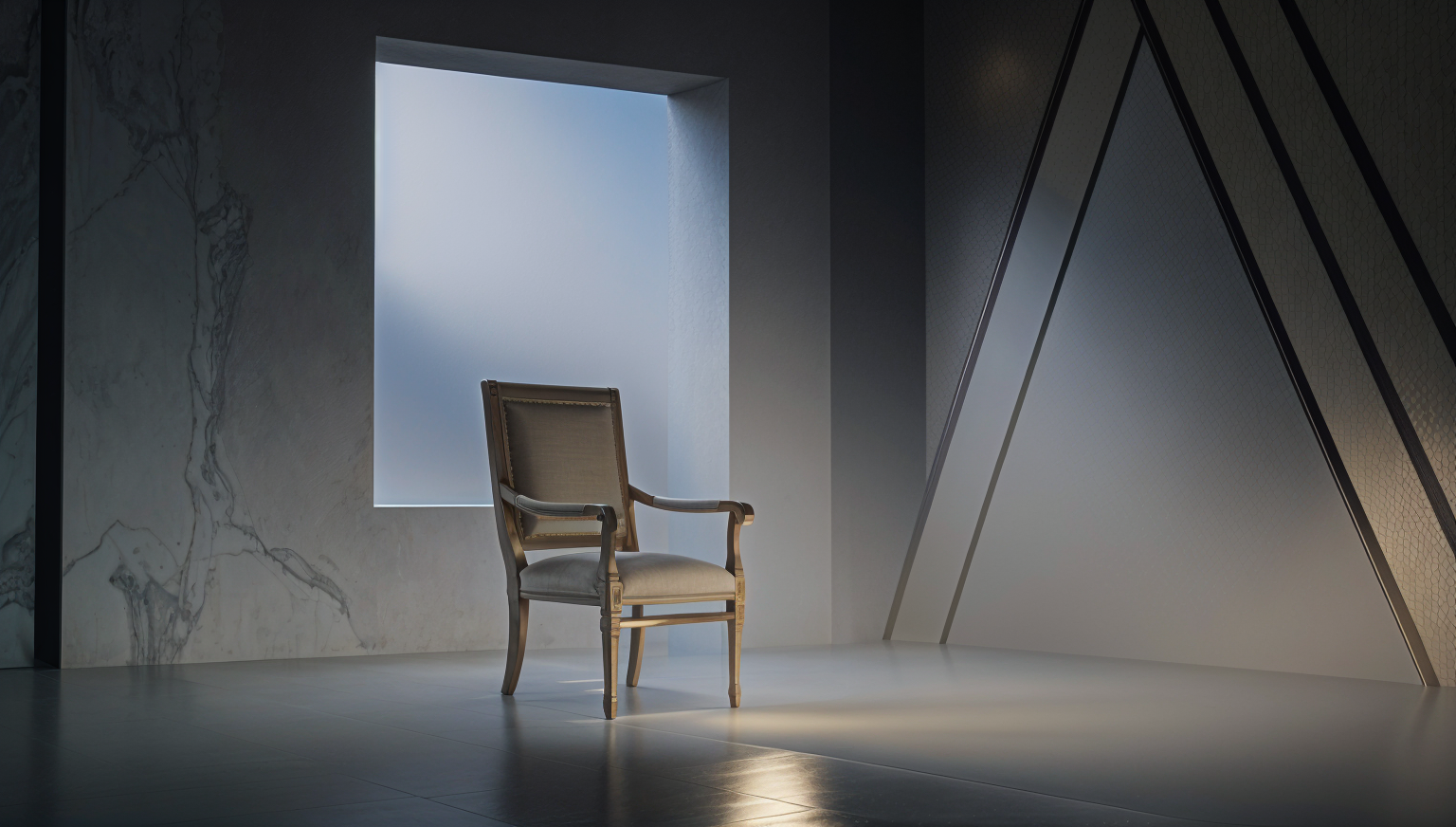 photorealistic bathroom vanity elevation straight on centered composition eye level camera minimal clean architecture warm neutral palette walls are benjamin moore white dove ceiling white vanity shaker style alder wood with warm smoky brown stain visible grain two stacked drawers on the left and two shaker doors on the right recessed toe kick stone crema marfil marble countertop with matching 6 inch tall crema marfil backsplash honed finish sink and fixtures white oval undermount sink polished nickel widespread faucet and matching polished nickel drain mirror requirement one single full wall mirror on the back wall only the mirror covers the entire back wall above the backsplash from left wall to right wall and from the top of the 6 inch backsplash to the ceiling frameless no trim no gaps no panels no multi piece seams do not render a smaller mirror do not render a partial mirror mirror reflection reflect a shower with a frosted glass barn door on a stainless steel sliding barn door track with visible rollers horizontal track across the top lighting replace any existing light with a hubbardton forge glissade led bath bar installed horizontally above the mirror centered the fixture is sculptural artisan blown glass with a rippled hammered texture glowing warm white mounted to a minimal brushed metal backplate left side condition remove the tall cabinet entirely replace it with a flat painted wall and a tall narrow vertical frameless mirror mounted on that left wall floor 12x24 limestone tile honed warm beige tone running bond install no divider lines no sketch outlines no graphic lines no segmentation artifacts photorealistic textures and accurate reflections