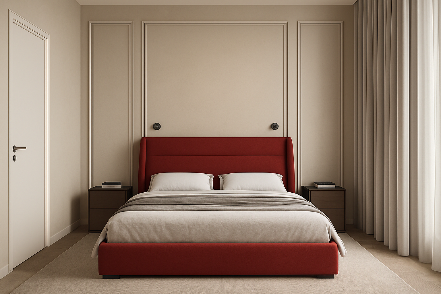 add curtain to the front of glass doors add guzzini spots on rail to ceiling light them up put marble on island and worktop and back of kitchen put sofa behind the glass wall