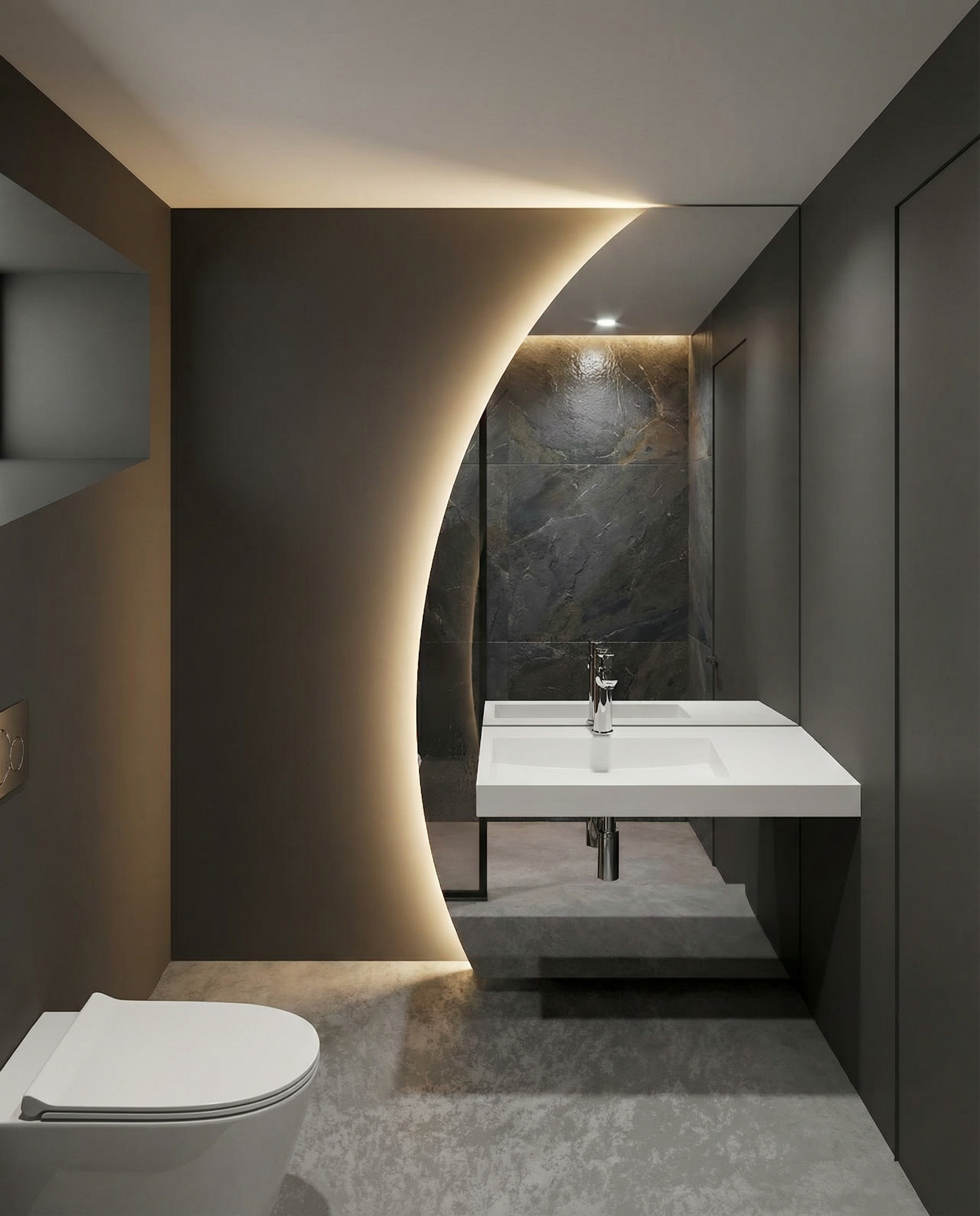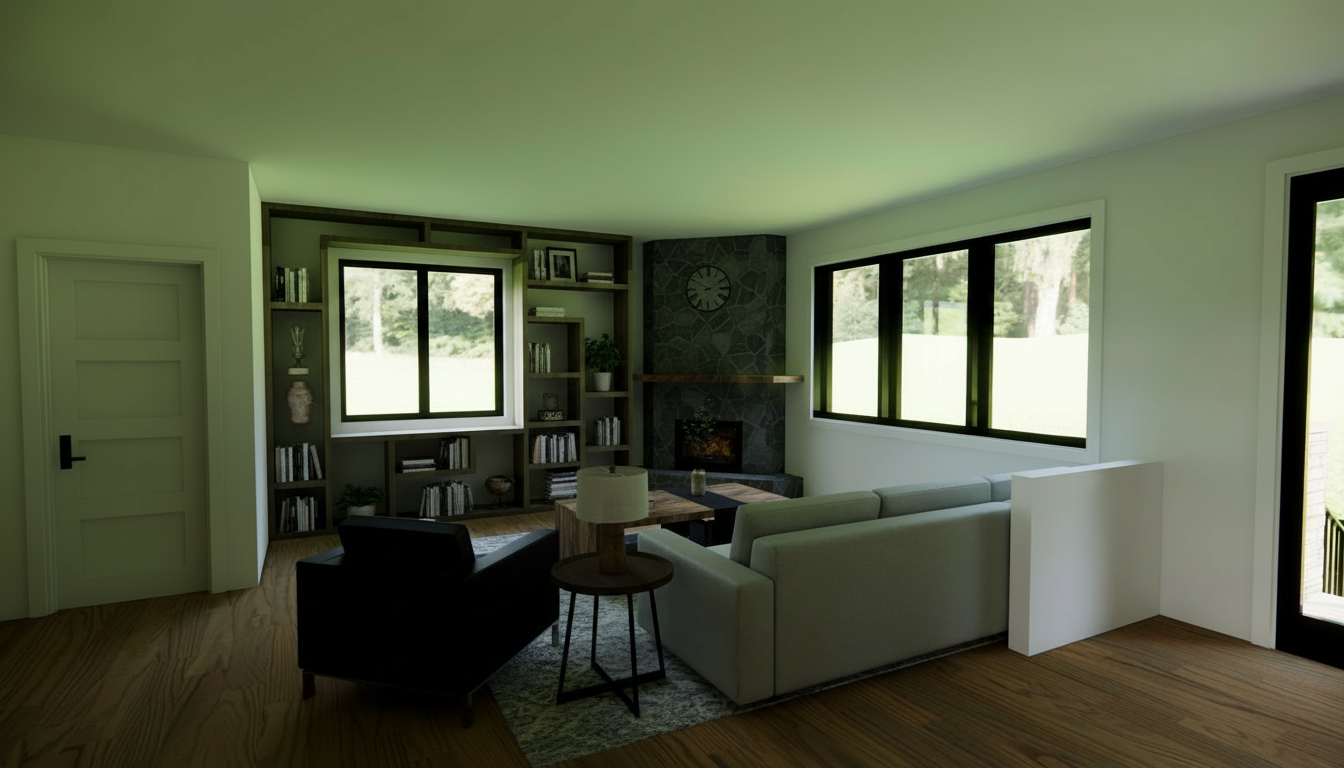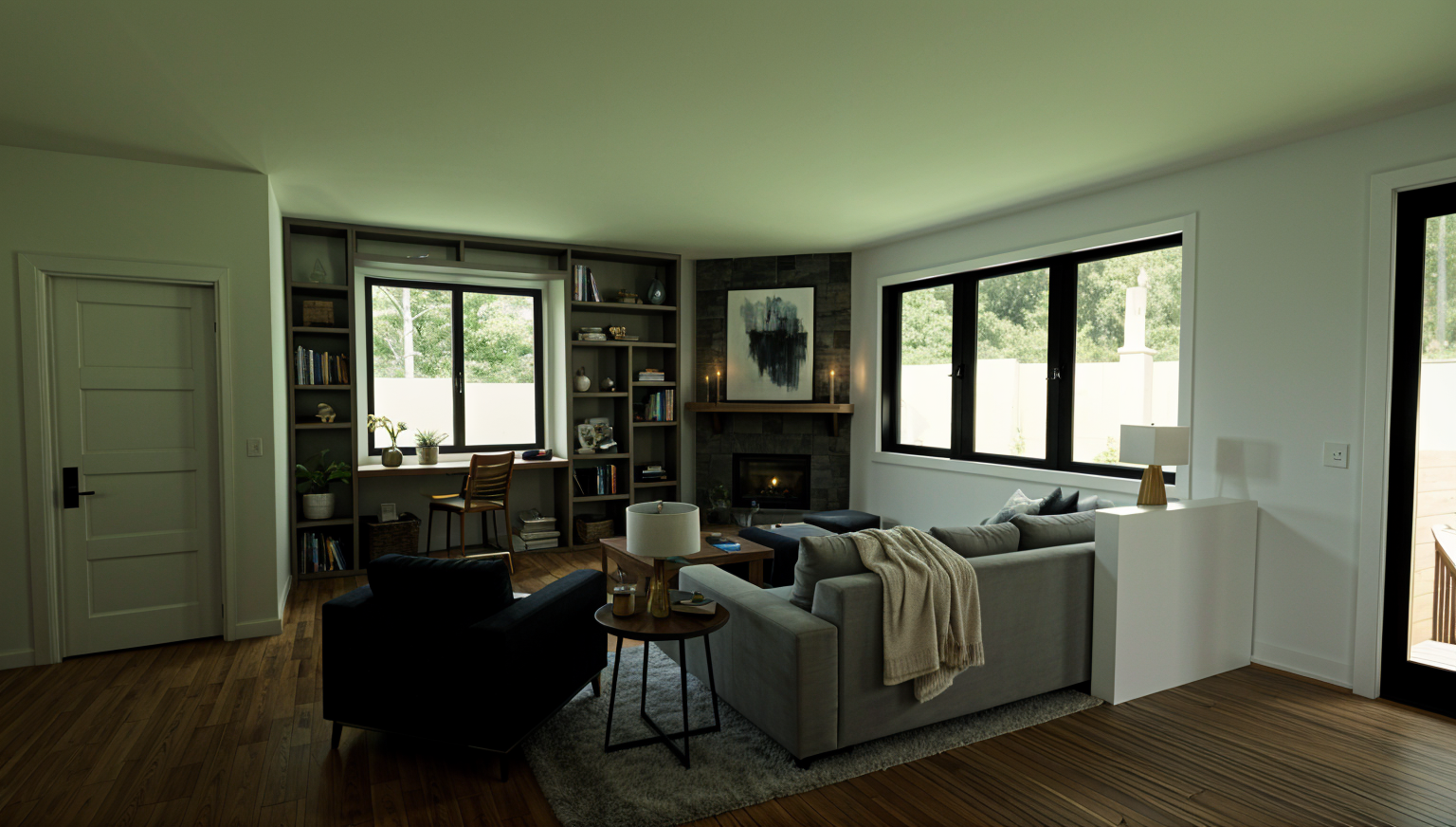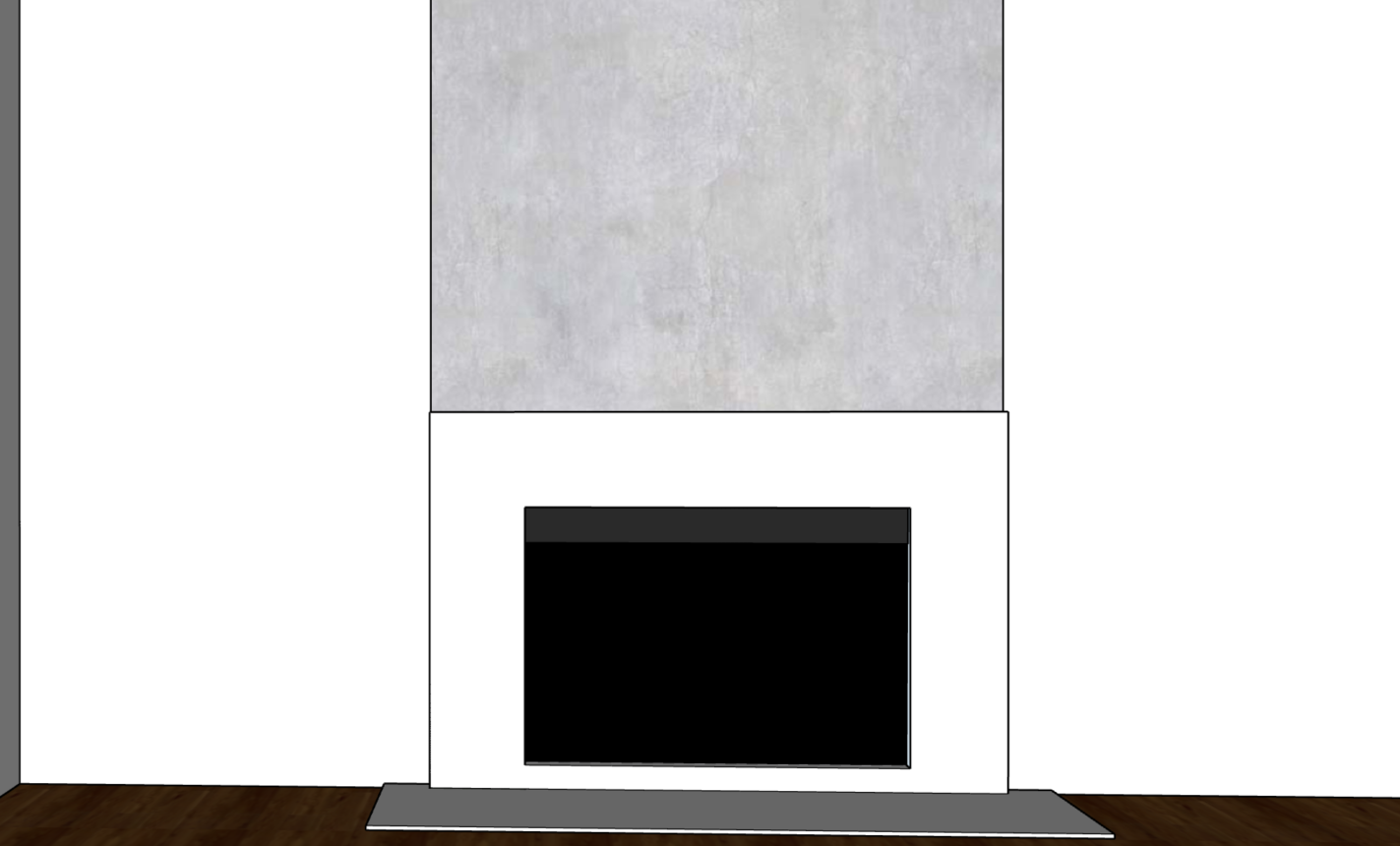 create a modern elegant fireplace scene the fireplace wall is a sleek concrete finish in soft grey tones with a subtle texture the fireplace surround is classic white contrasting with a deep black interior the floor is rich dark wood adding warmth to the space a simple minimalist grey hearth extends in front of the fireplace the atmosphere is cozy and inviting with soft ambient lighting enhancing the textures and colors architecture