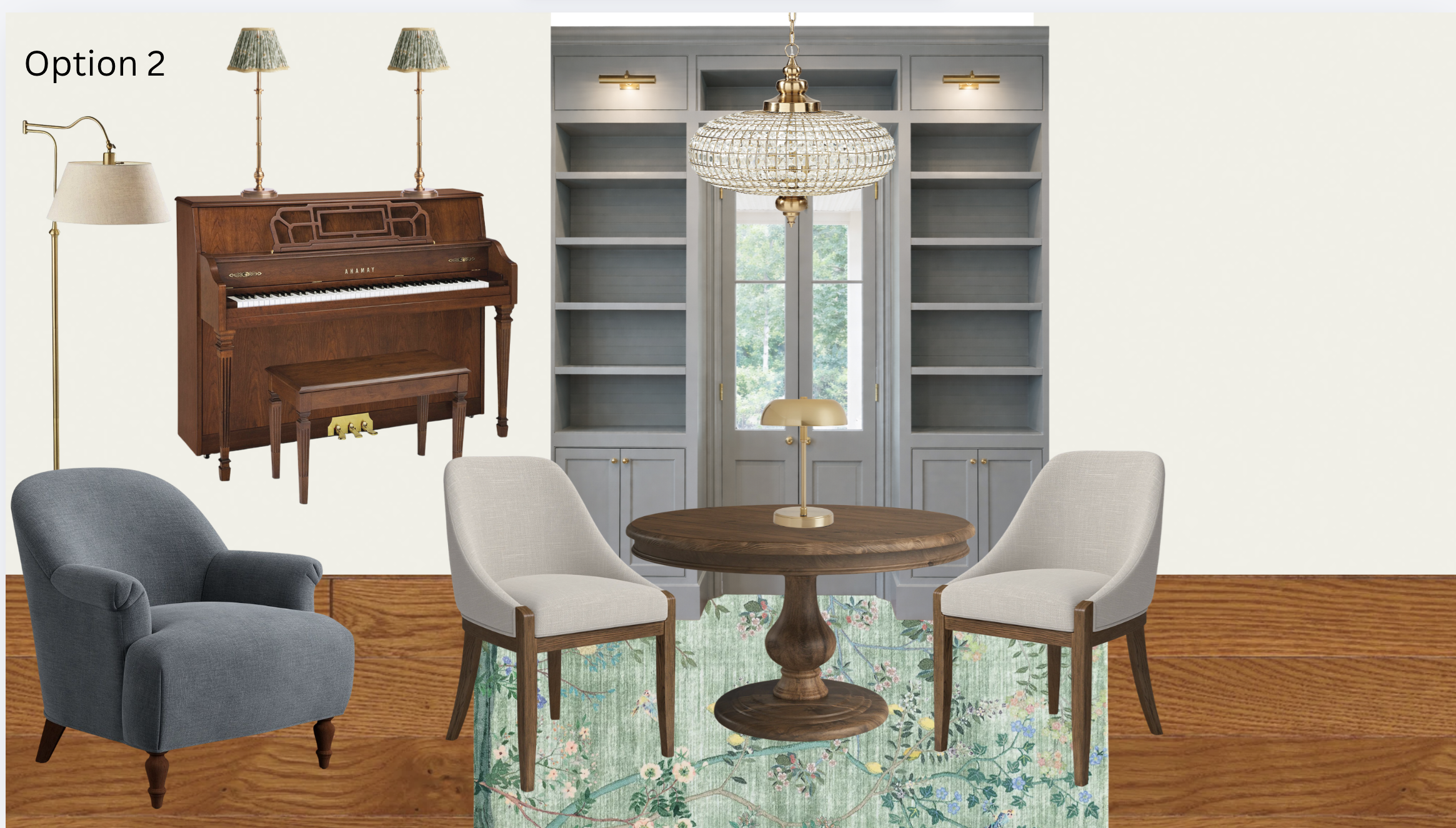 realistic rendering of library using mood board