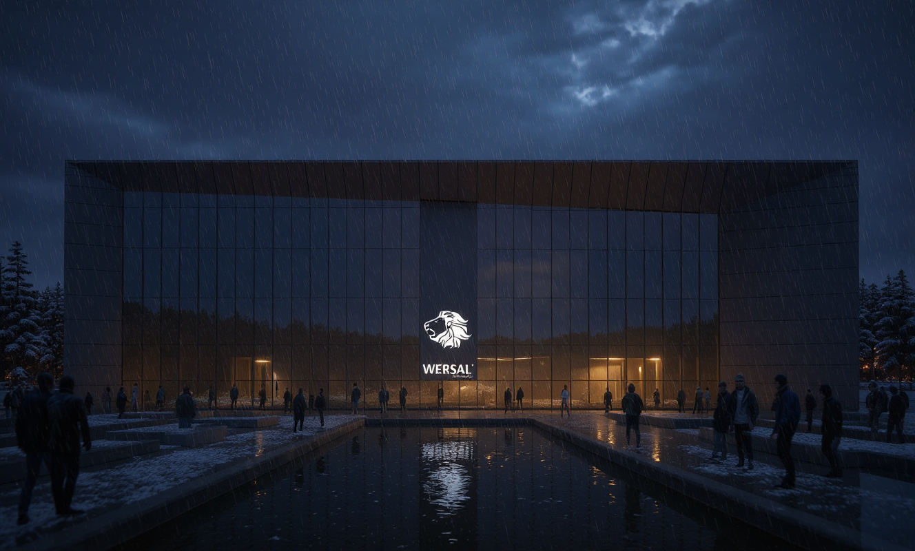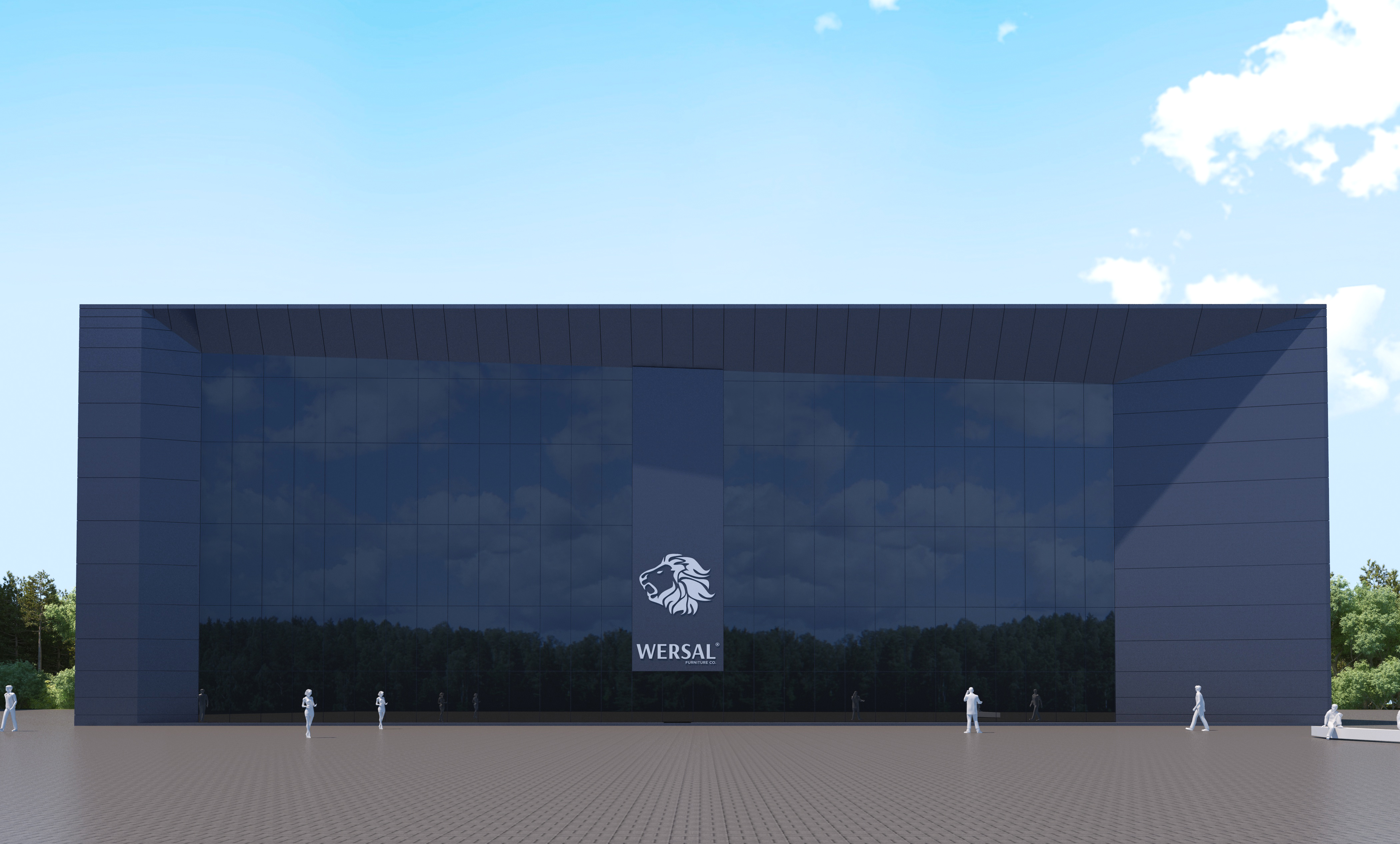 design an ultra modern square in front of the office building with benches greenery decorative low concrete bonice add people a square made of concrete slabs cascading planters with greenery and water elements