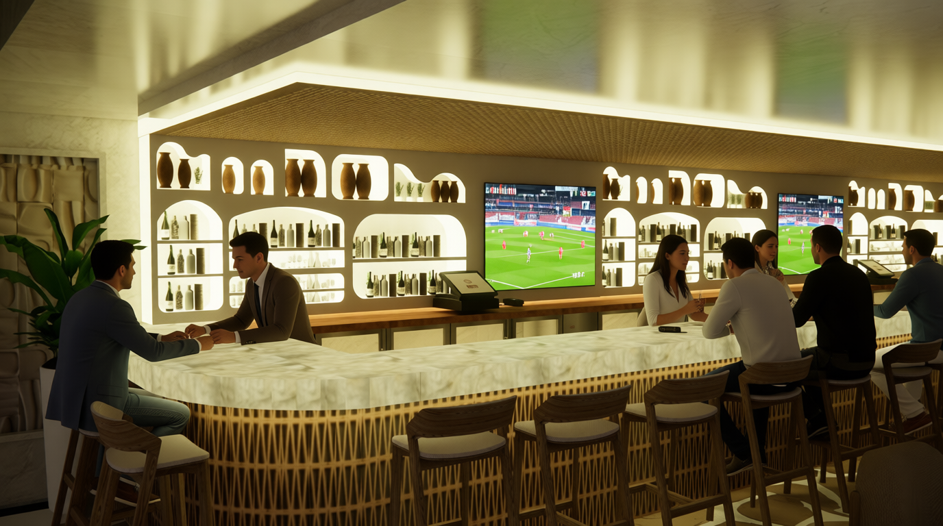 photorealistic soft warm glow lounge ambiance keeo roporttions and design add dj